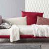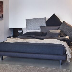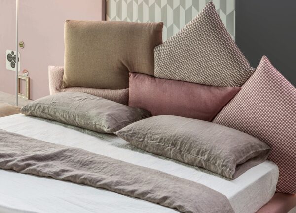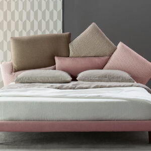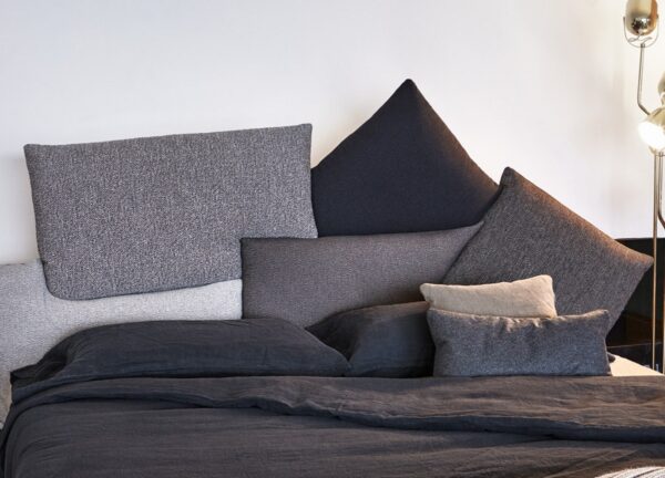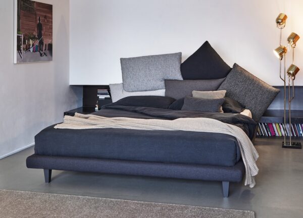 The Bonaldo Picabia king size bed has a headboard which has 5 individual cushions that can be upholstered in matching or contrasting patterns and textures. It was designed by Giuseppe Vigano for Bonaldo who has managed to create a bed that offers lots of possibilites for customisation.