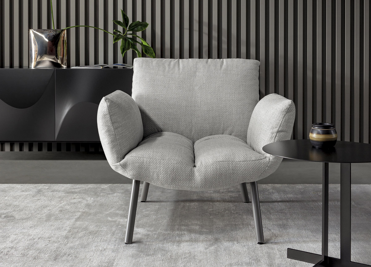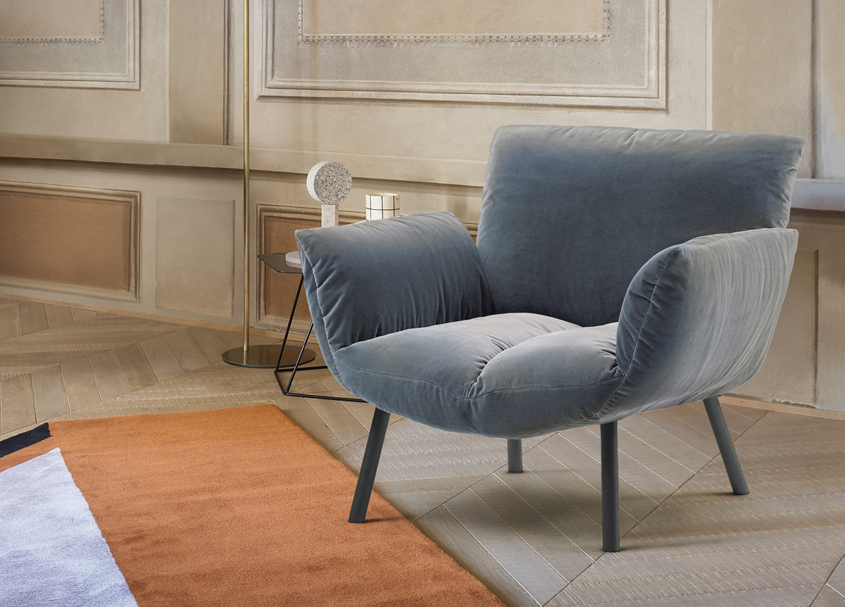 The Bonaldo Pil armchair by Alessandro Busana takes his inspiration from the object that symbolises softness, namely the cushion. Made in Italy.