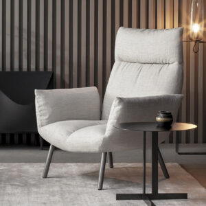 The Pil Hi armchair is part of Bonaldo’s uber comfortable pillow inspired collection, designed by Alessandro Busana, & has a matching low back armchair, dining chair & bar stool.