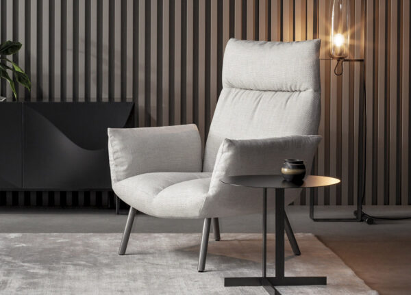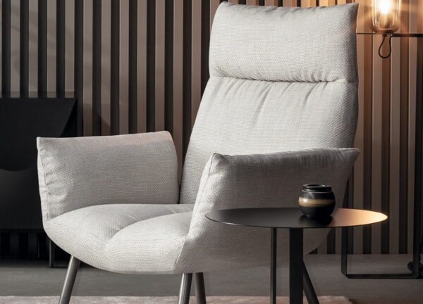 Normally the cushion is interpreted as an accessory, but here in the Pil Armchair the cushion plays the starring role, shaped and adapted to create a chair that conveys comfort and relaxation.