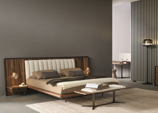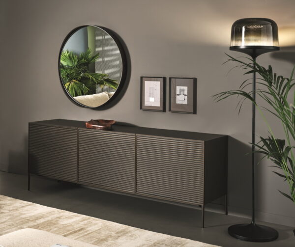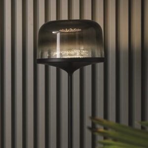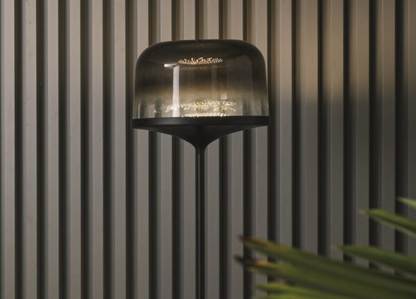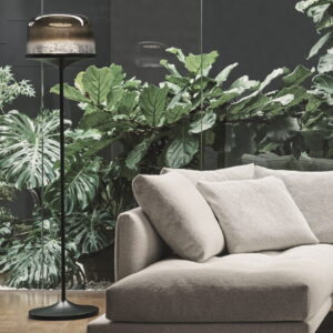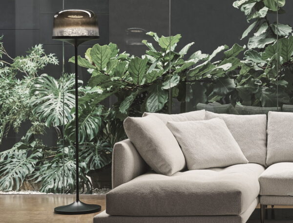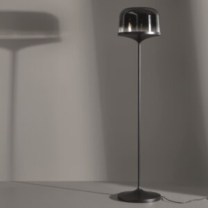The Pin floor lamp has a statement blown glass lampshade which contrasts with its slender metal frame. Pin’s linear design fits seamlessly into any home setting, a discreet presence that