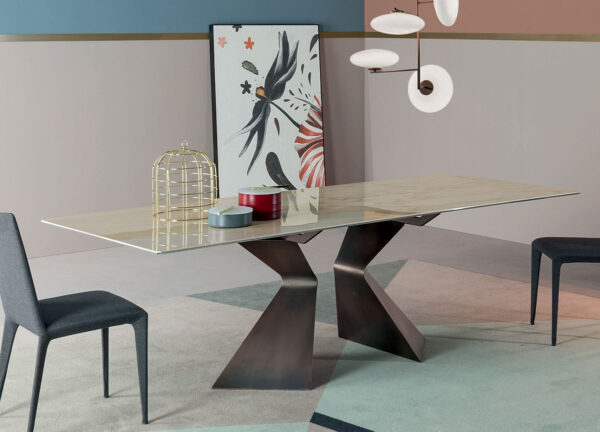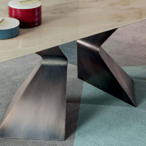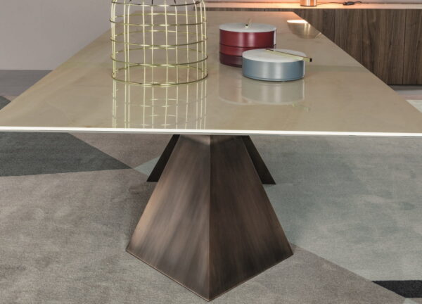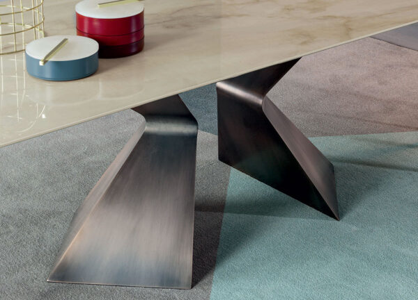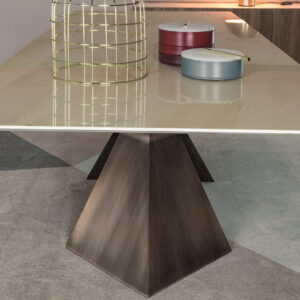 For the table top there are a range of options, including oak and walnut, or ceramic finishes in matt. glossy or silk. Ceramic table tops are made of a special type of ceramic which is bonded on to extra clear glass and designed to be almost indestructible, as well as heat proof and scratch proof.