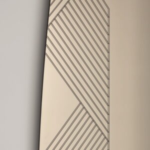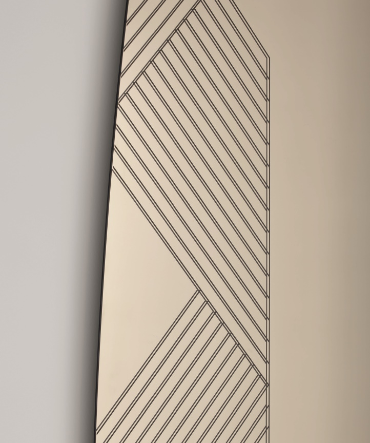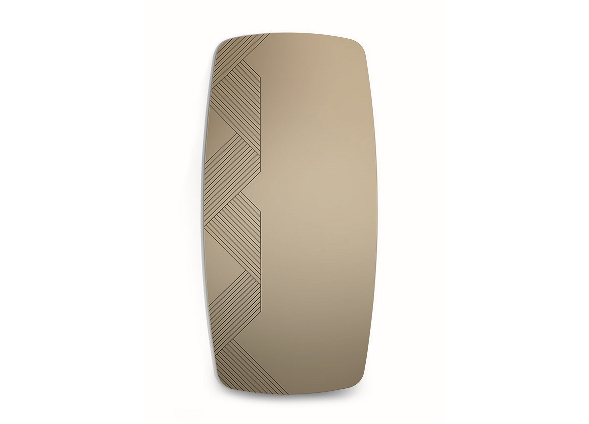 The wall-hung Sign mirror has rounded corners and edges which give it a highly ornamental look. The screen-printed geometric decorations on part of the glass add an eye-catching feature to Sign, transforming this highly versatile and functional accessory into a statement piece.