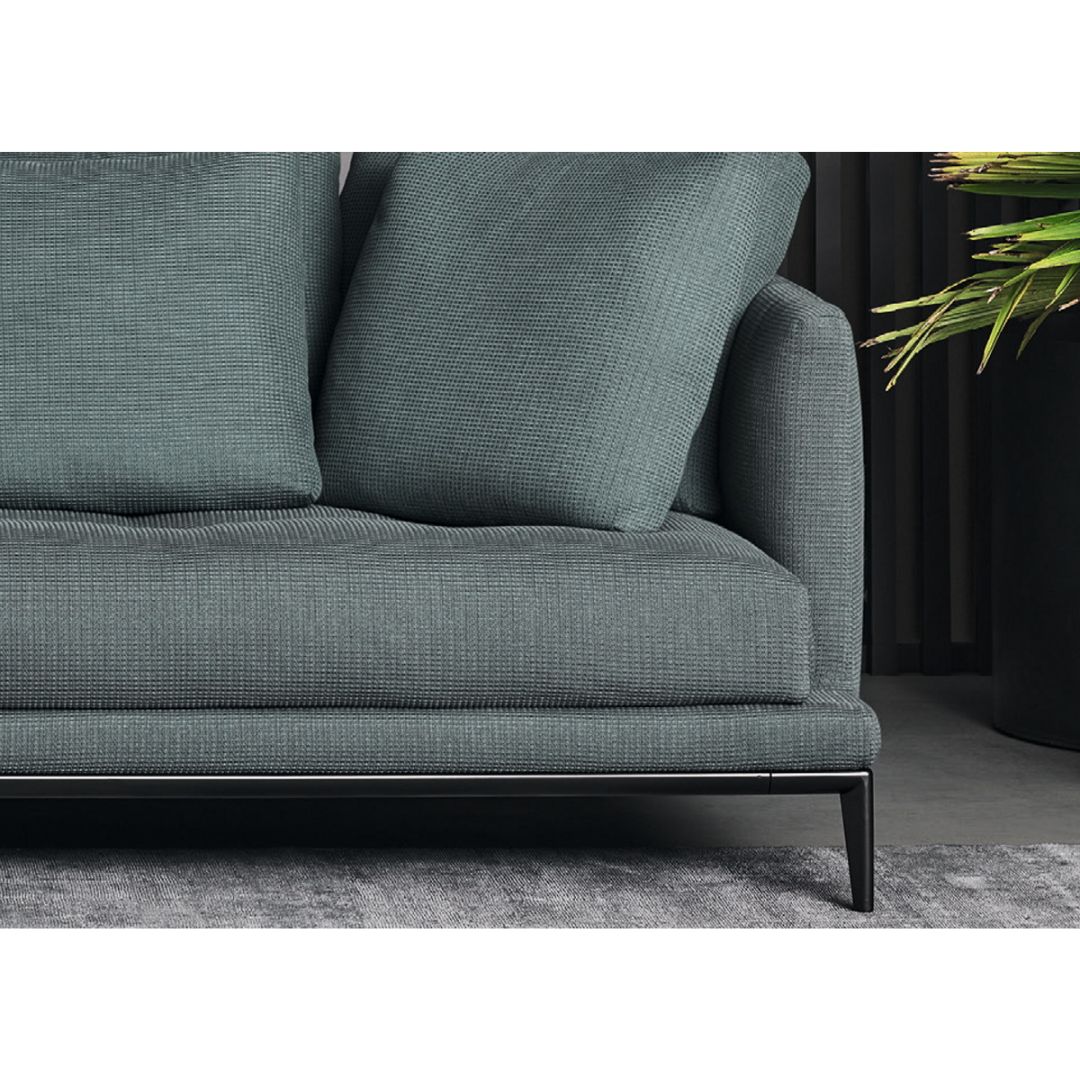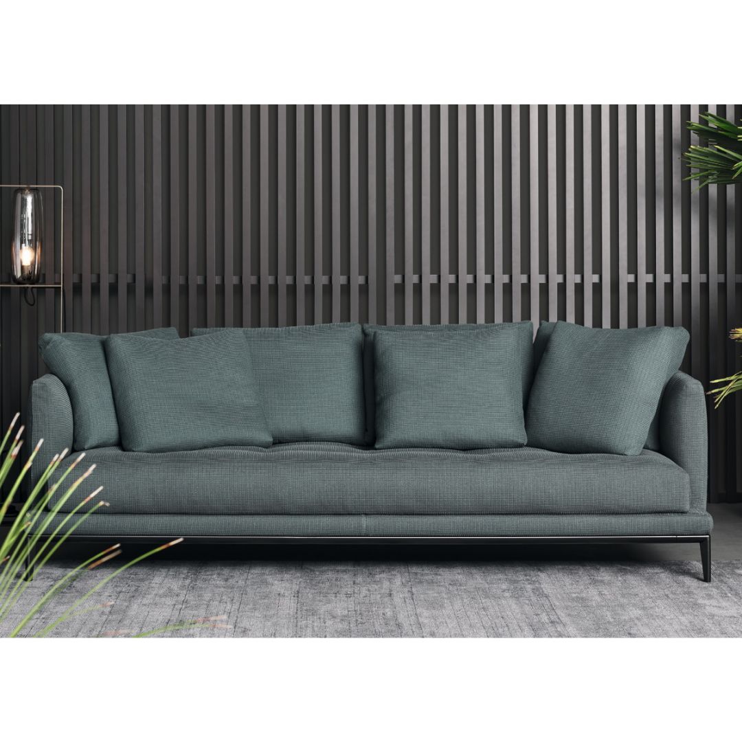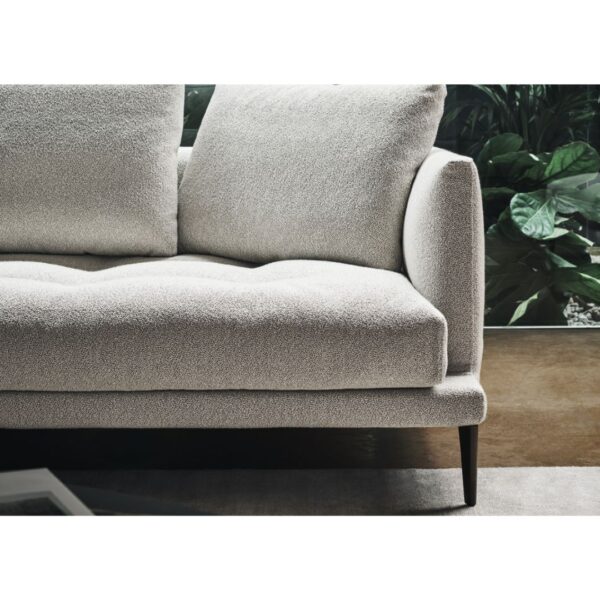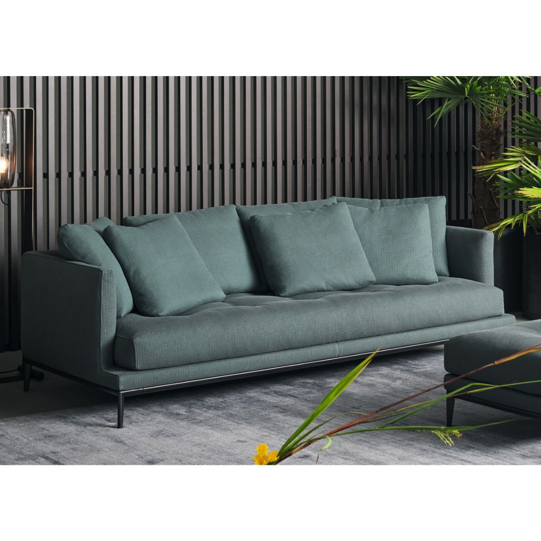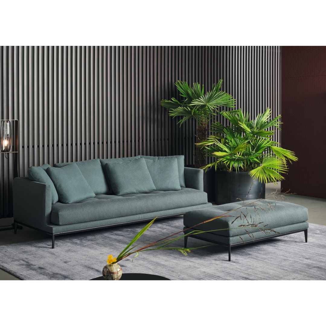 The Soft collection is available as a standard sofa as seen here, or you can create your own bespoke sofa composition by combining a range of modules, such as corner units, poufs, and chaise longues. Each Soft Island module has a wide body with a single long seat cushion featuring stylish stitching that gives movement and elegance. The extremely comfortable seat and back cushions are filled with a mix of feather and fibre, whilst the lumbar cushions are filled with goose/duck down, all are covered with 100% featherproof cotton fabric.