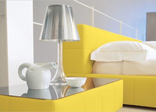 The Squaring bedside table by Giuseppe Vigano is inspired by the beds of the same name, it is fully upholstered and has a stylish quilted design. Made in Italy by modern furniture brand, Bonaldo.