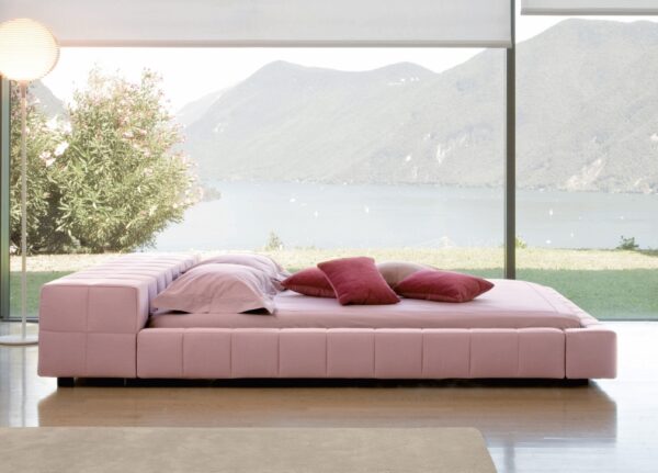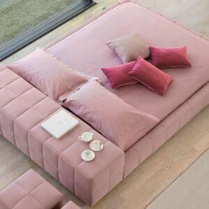 The Bonaldo Squaring Isola Alta Super King size bed by Guiseppe Vigano offers plenty of space both in the bed and on top of the headboard.