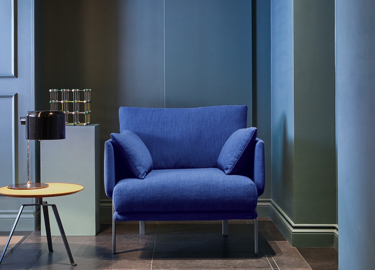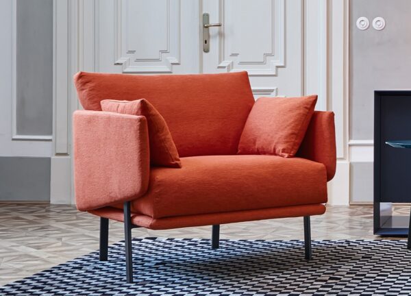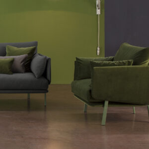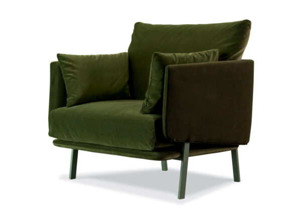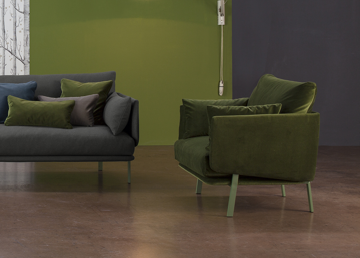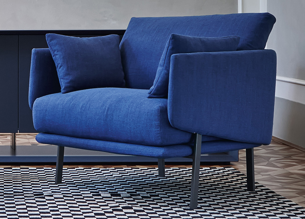 The unique Bonaldo Structure armchair was designed by Alain Gilles. It has a matching sofa and both pieces stem from Allain Gilles idea of “playing with the frame of a classic sofa, of opening it up to reveal a softer interior and creating a dynamic motion between the seat and backrest”.