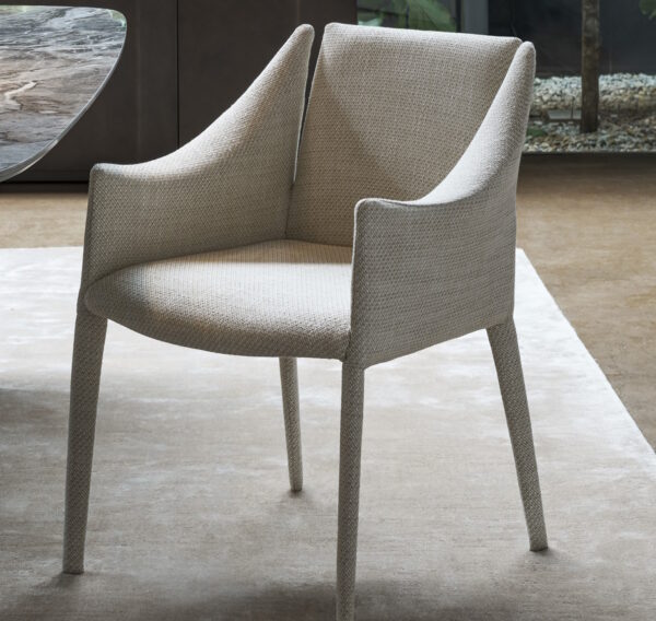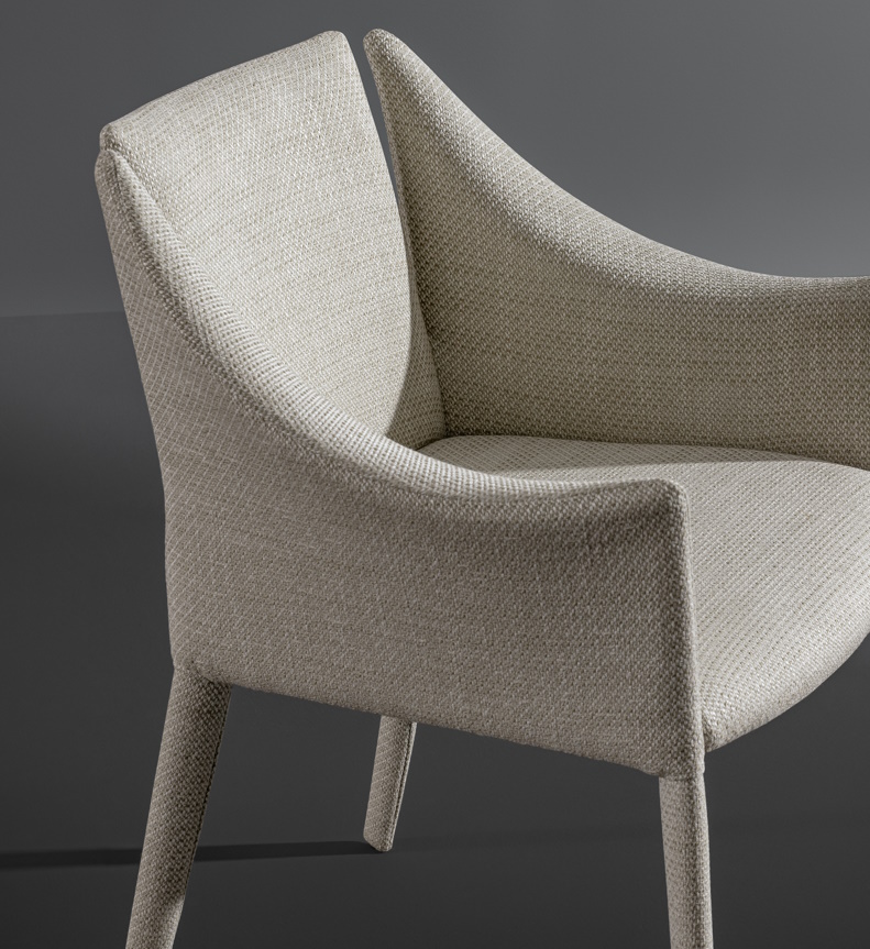 Made in Italy and perfect for any dining area, Vela harks back to the classic early twentieth century armchair which decorated elegant bourgeois European salons. Modern elements of the design can be seen in shape of the chair, with its deep comfortable seat cushion and supportive back and armrests, its style almost reminds the observer of a yacht at sea.