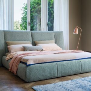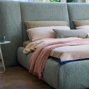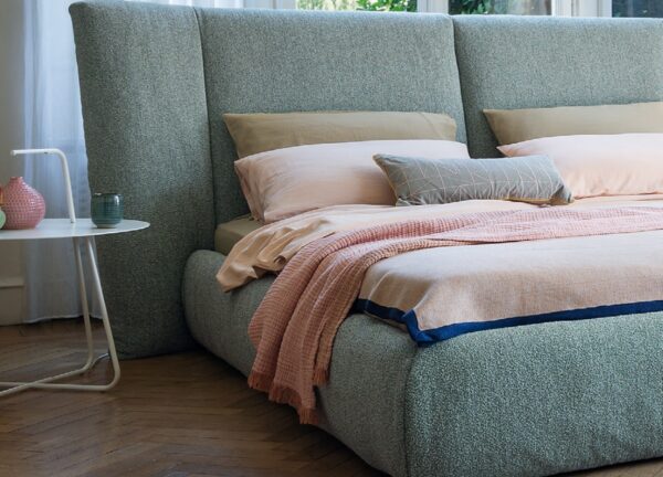 Featuring an incredibly, wide, upholstered headboard, Youniverse is a soft bed in all its aspects. Soft to touch, thanks to the generous padding that covers it completely, and soft to behold, thanks to the total absence of corners or any element which could generate a feeling of edginess. The ideal bed to achieve a maximum cocooning effect.