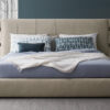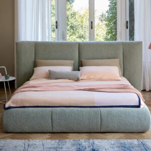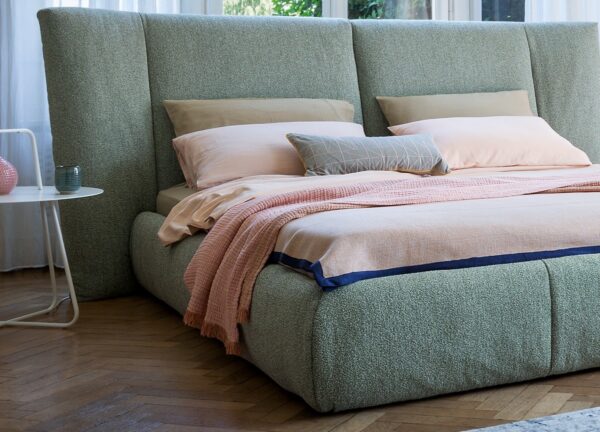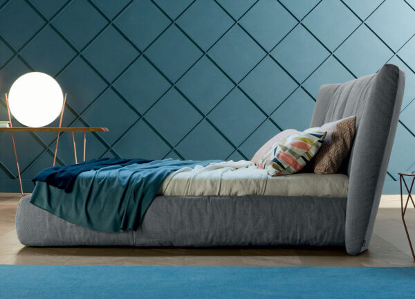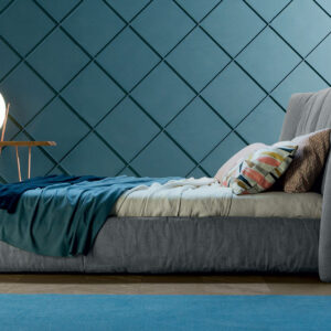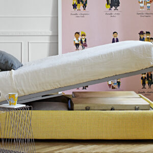 Youniverse is a soft bed in all aspects, with a huge upholstered headboard which wraps around the bed creating the same effect as a cocoon. The large storage base is easily opened by lifting the mattress with pistons hidden in the frame to reveal a cavernous dust proof compartment below.