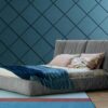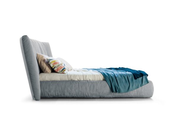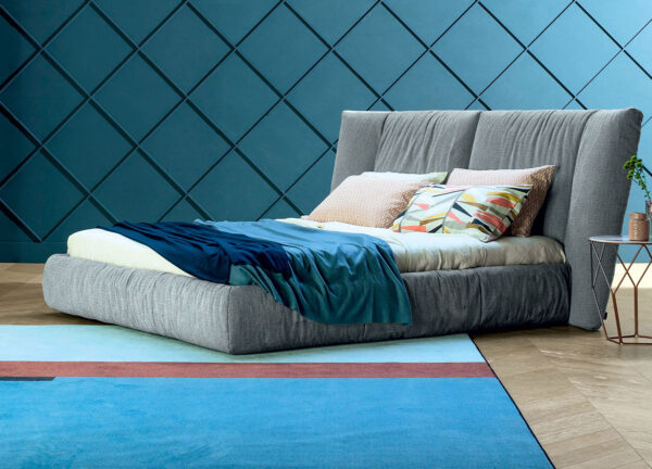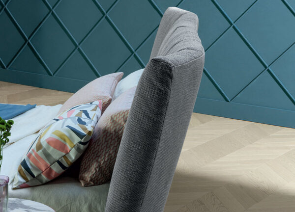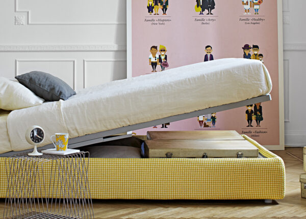 Youniverse is a soft bed in all aspects, with a huge upholstered headboard which wraps around the bed creating the same effect as a cocoon. The large storage base is easily opened by lifting the mattress with pistons hidden in the frame to reveal a cavernous dust proof compartment below.