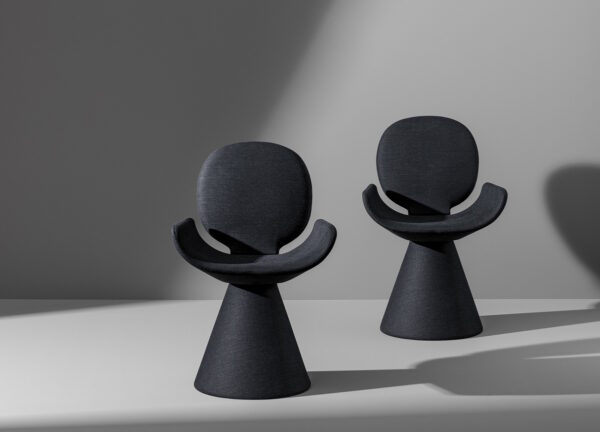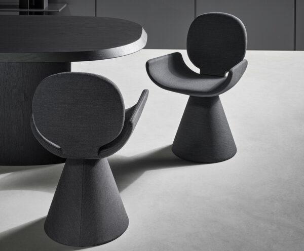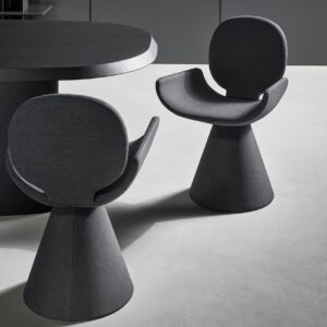 Youpi has a highly original shape which will add style and a sense of lightness to any space. The circular backrest flows into the large seat and the whole is supported by a fully covered flared conical base.