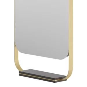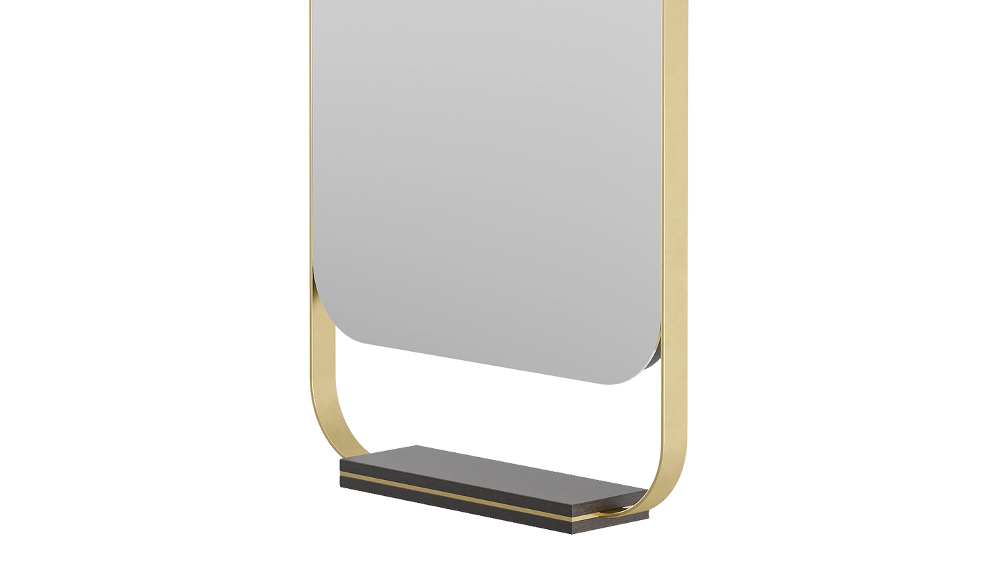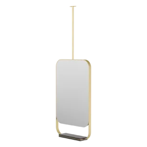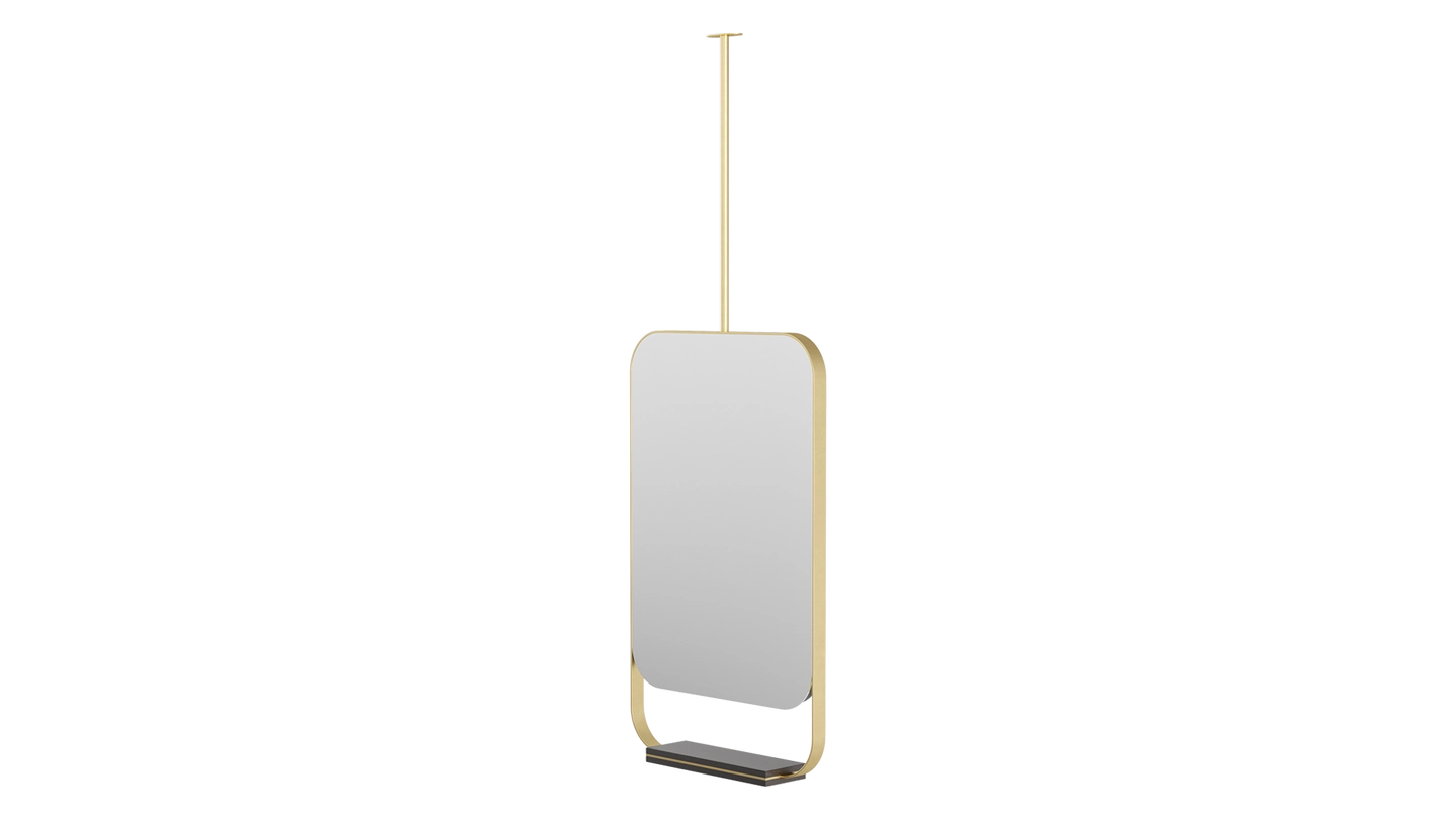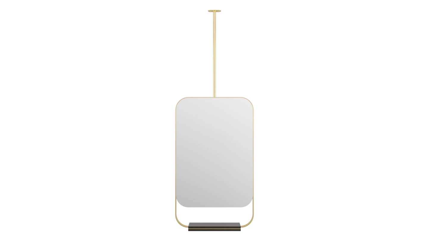 Distinguished by a ribbon-thin brass frame that incorporates a small wooden shelf, the BONDI mirror can be hung from the ceiling, offering you greater versatility when it comes to bathroom layout.