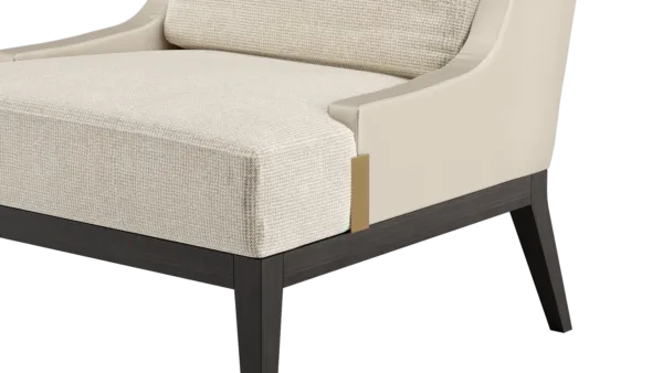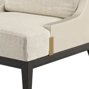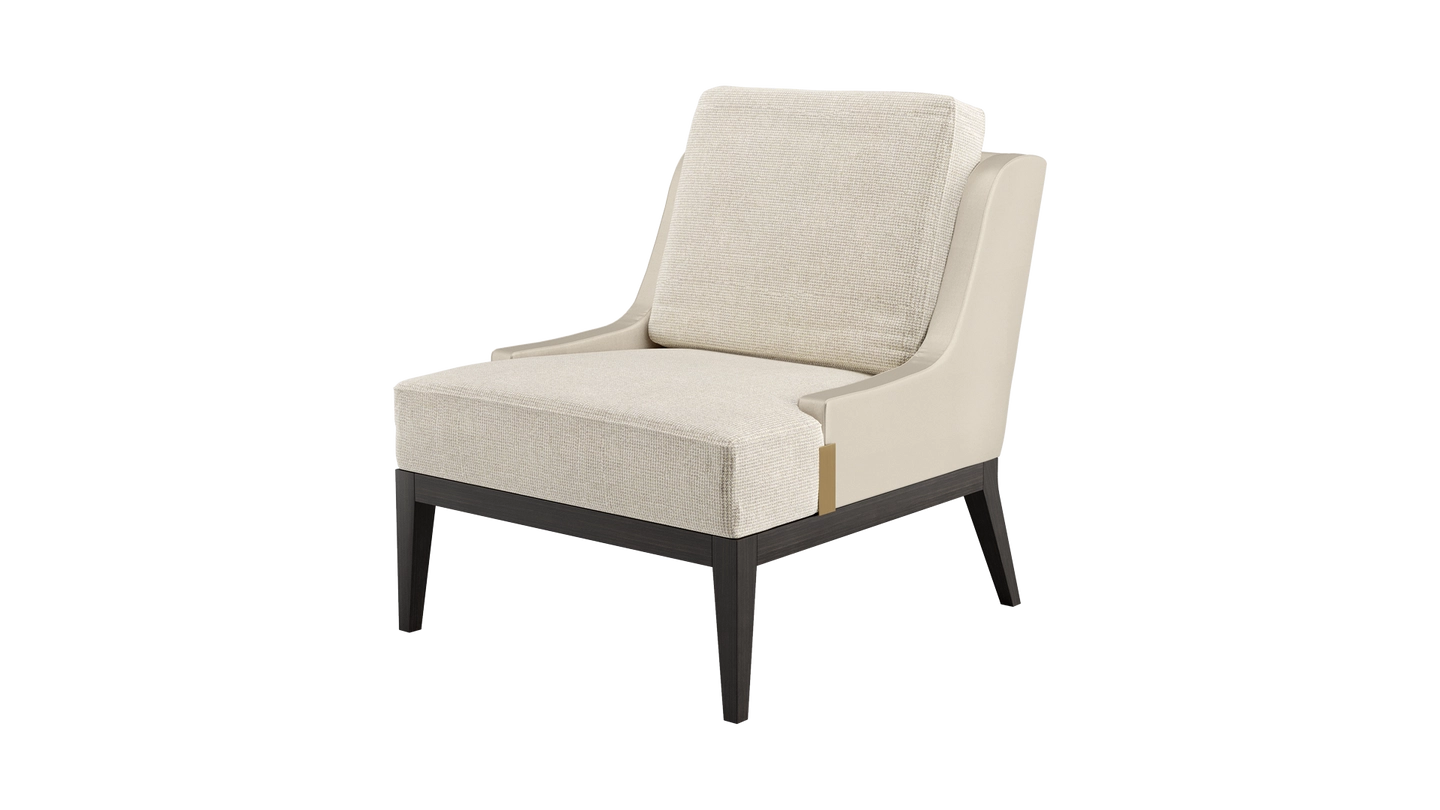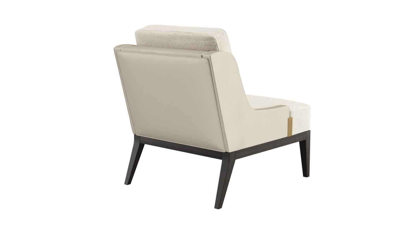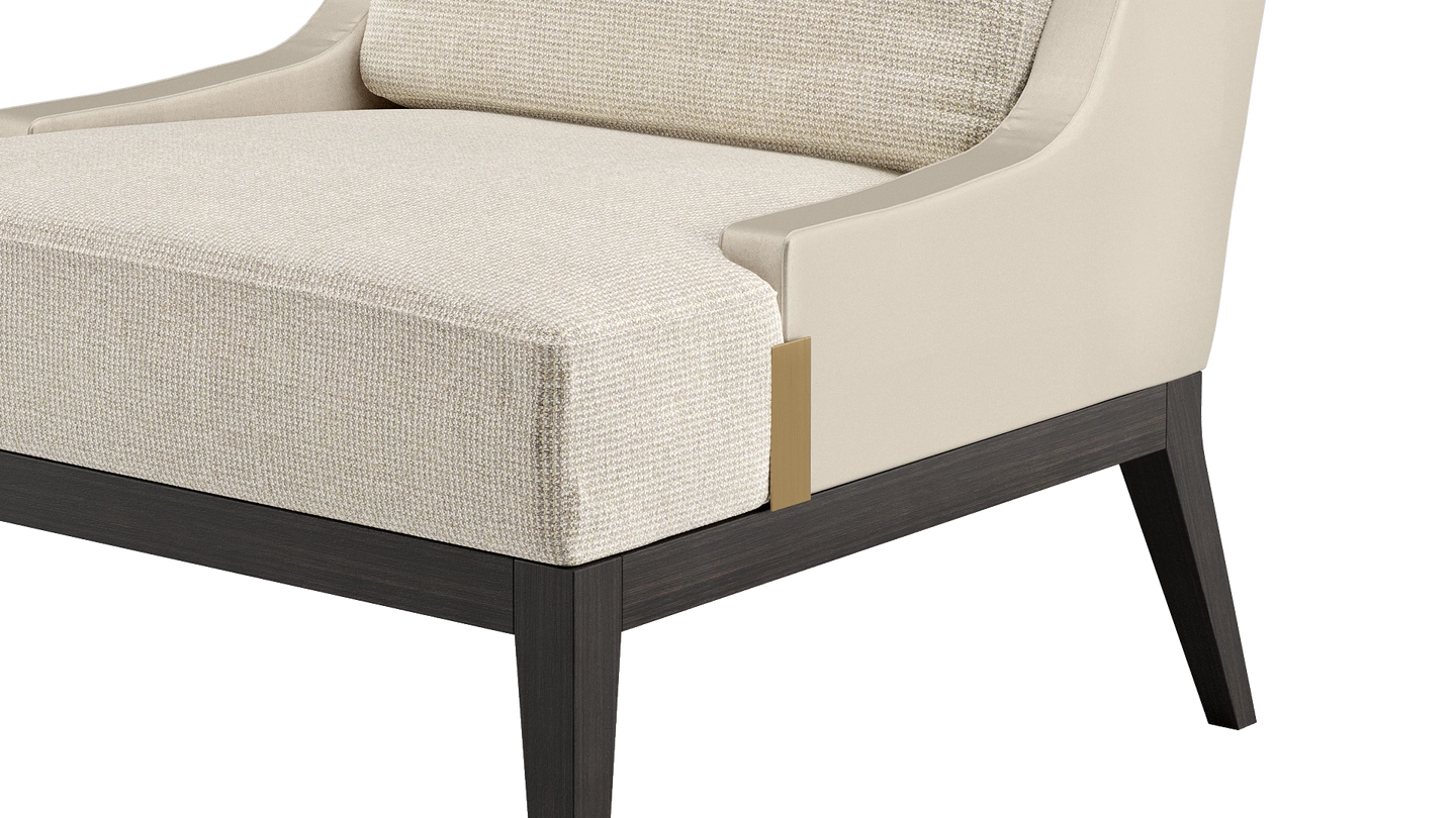 Notice how the BRERA chair’s fabric-upholstered seat cushions and satin-covered back are connected by a rectangle of brushed brass? It’s subtle details such as this that set FRATO’s designs apart.