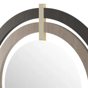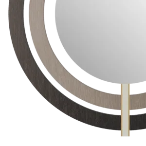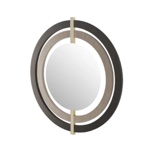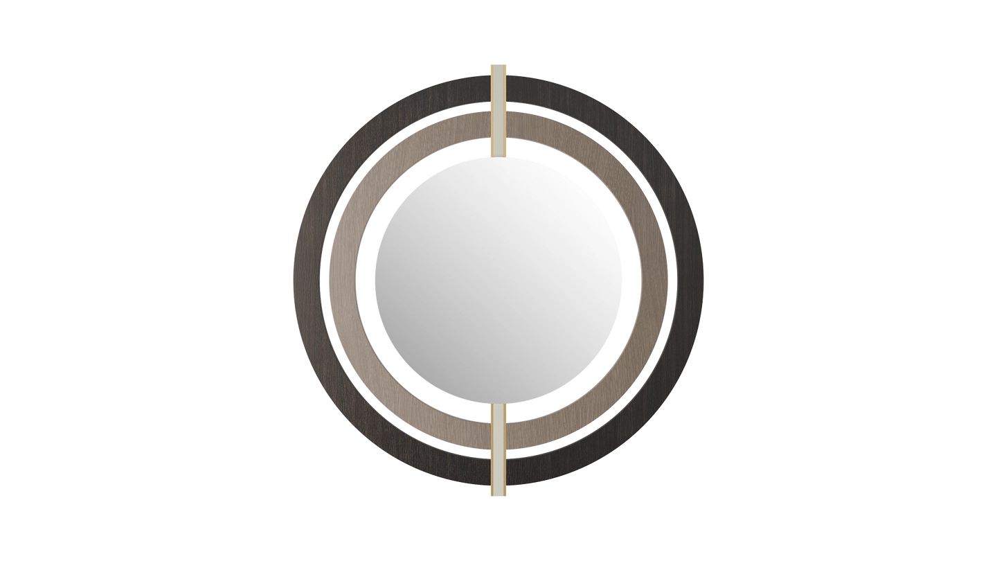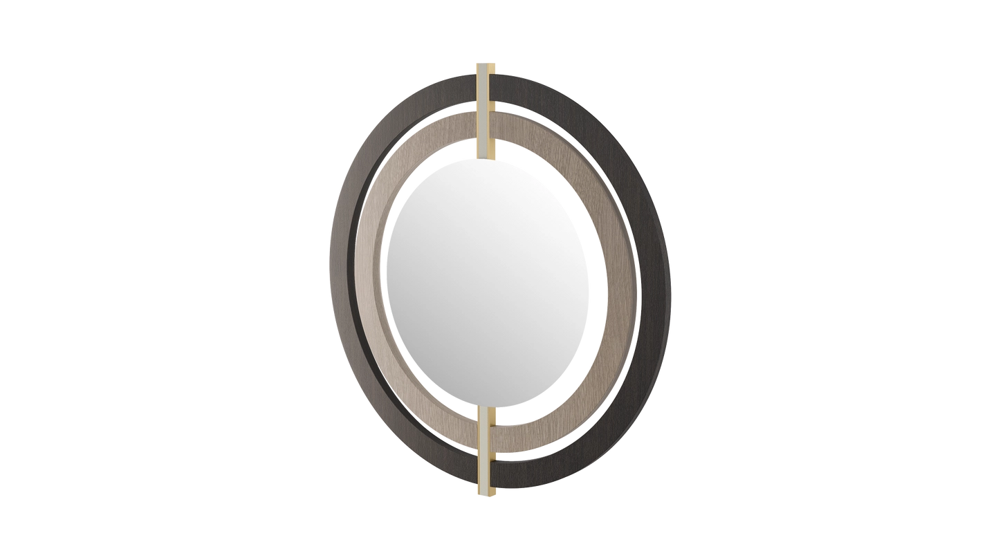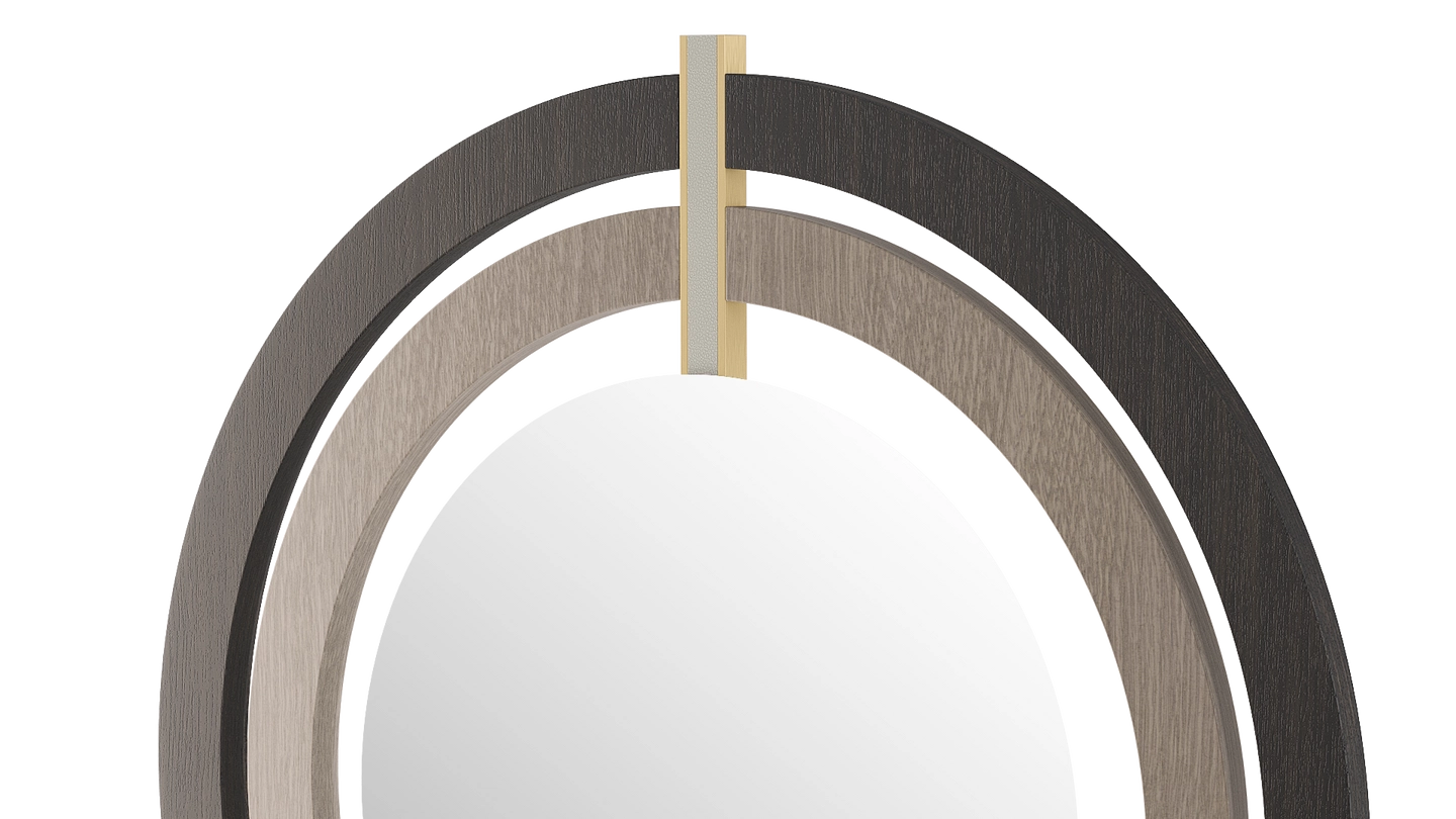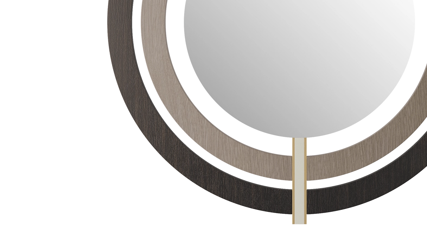 A series of neat, concentric circles creates a ripple-effect around the wall-hung BRESCIA’s central mirror. A deceptively simple design, it embraces an elevated materiality that includes leather, brass and wood veneer.