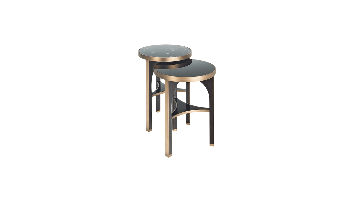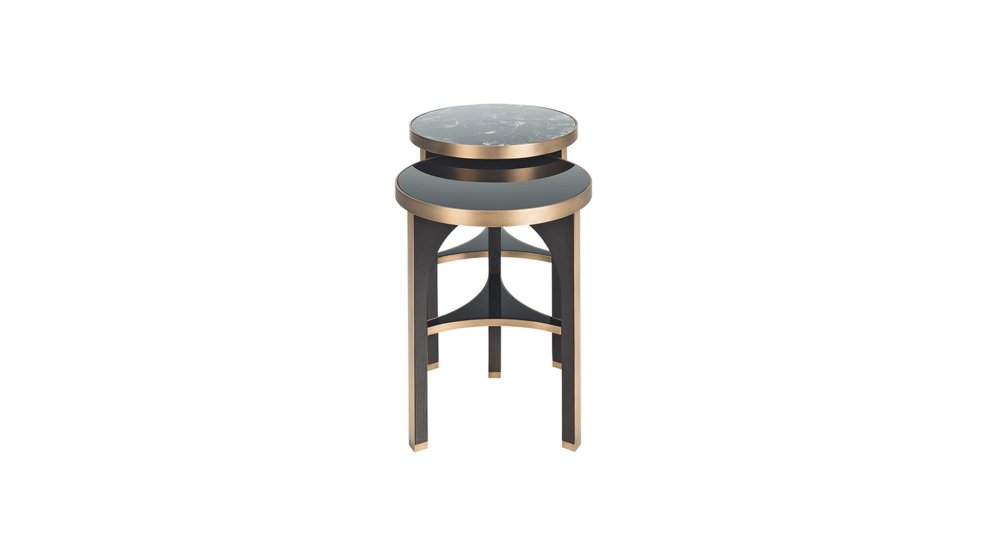 Rich wood and luminescent chrome create a striking contrast of dark and light in our BRIGHTON side table, which features a nesting design that’s both elegant and practical.