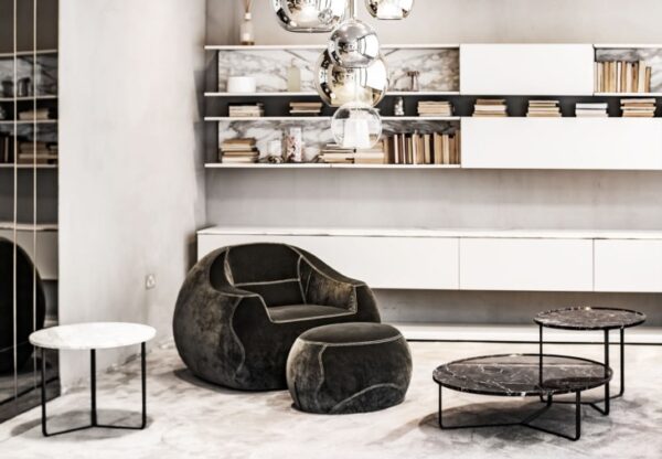 Armchair with metal structure embedded in polyurethane foam with swivel plate. Pouf in polyurethane foam. Removable fabric cover or non removable leather cover. All these Designs are Fully Bespoke . Our Expert Team can create any Design as per your specifications and requirements. For More information please contact our expert.