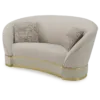 Our beautifully crafted BUCHAREST sofa, features a scalloped design inspired by the Art Deco era and brushed brass details for a glamorous touch.
