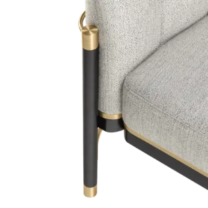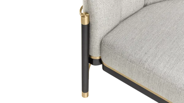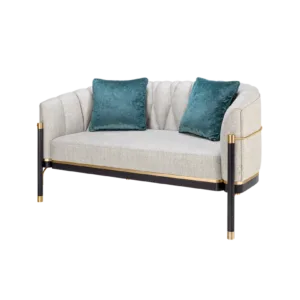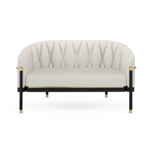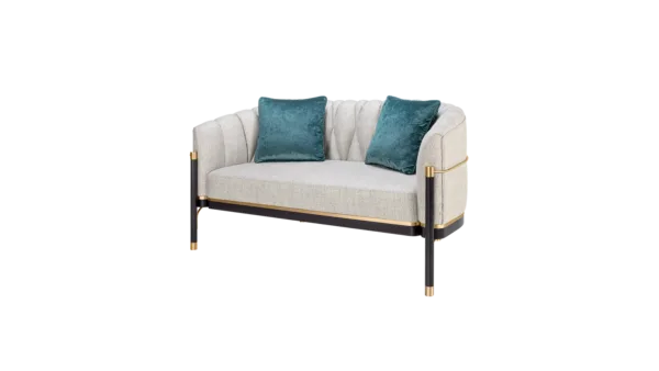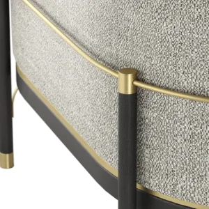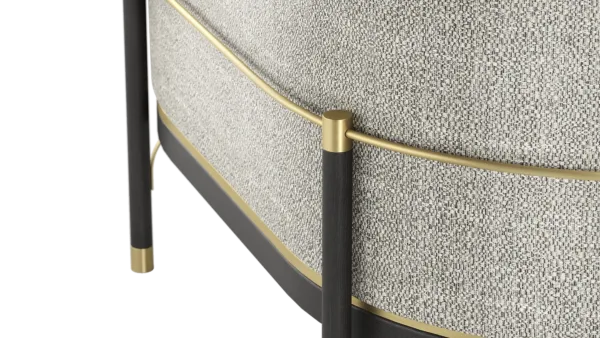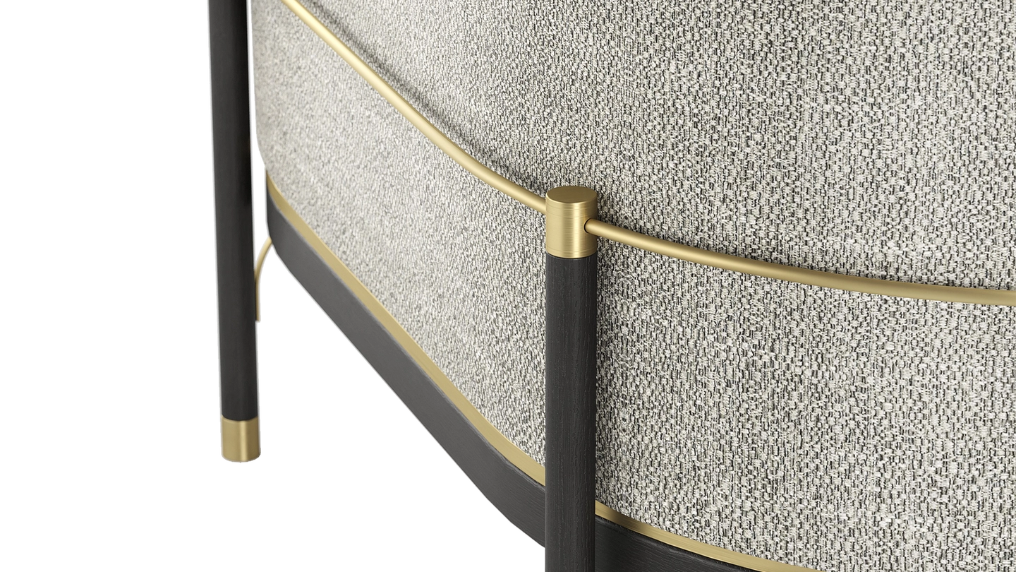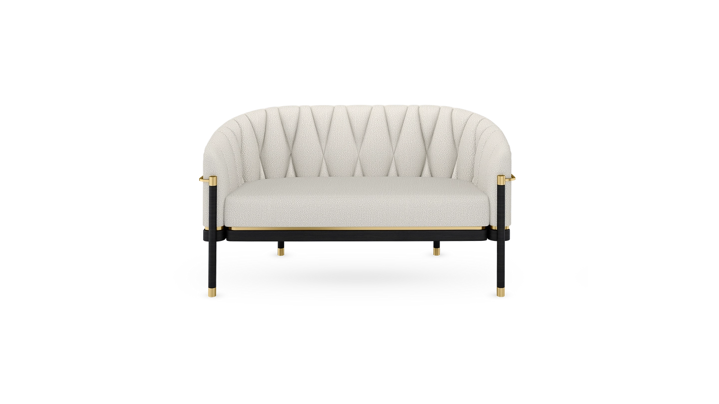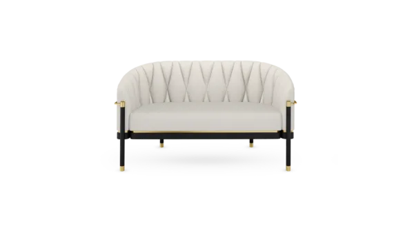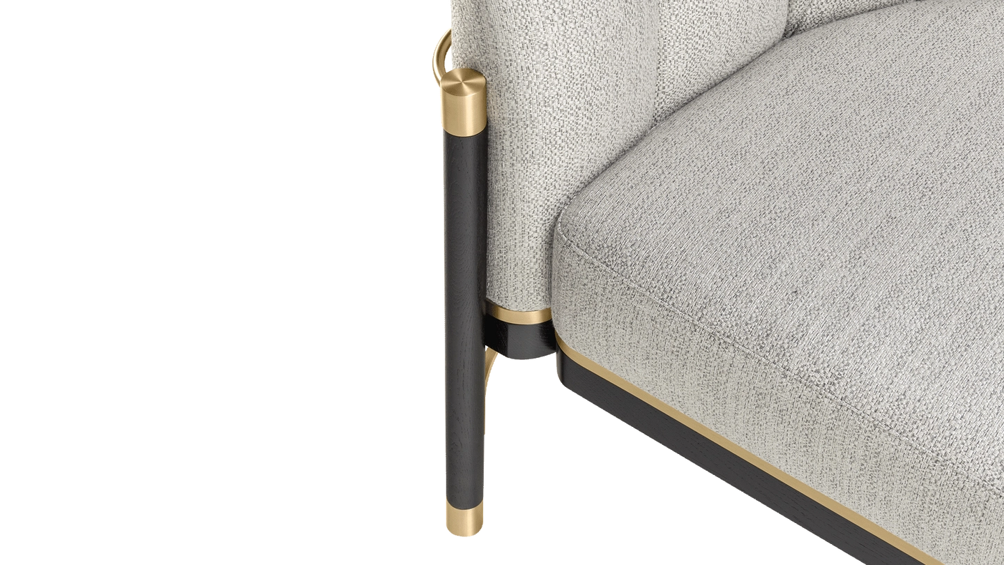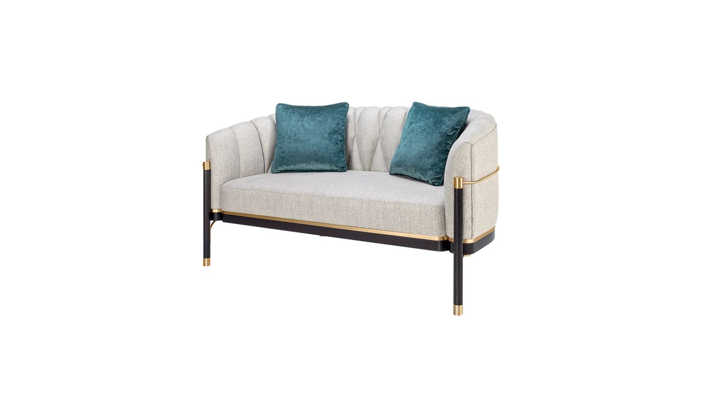 Our beautifully crafted BUCHAREST sofa, features a scalloped design inspired by the Art Deco era and brushed brass details for a glamorous touch.