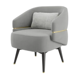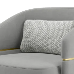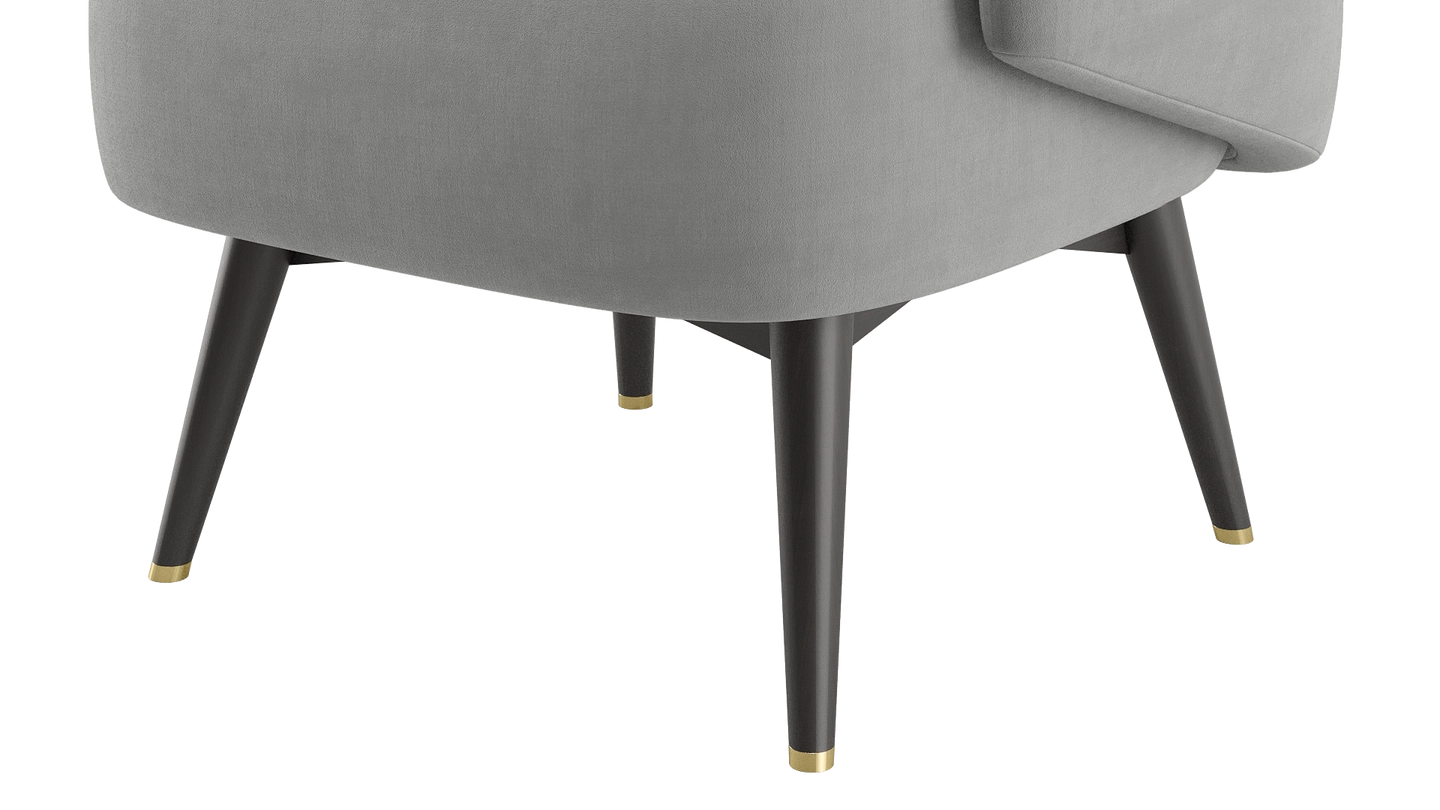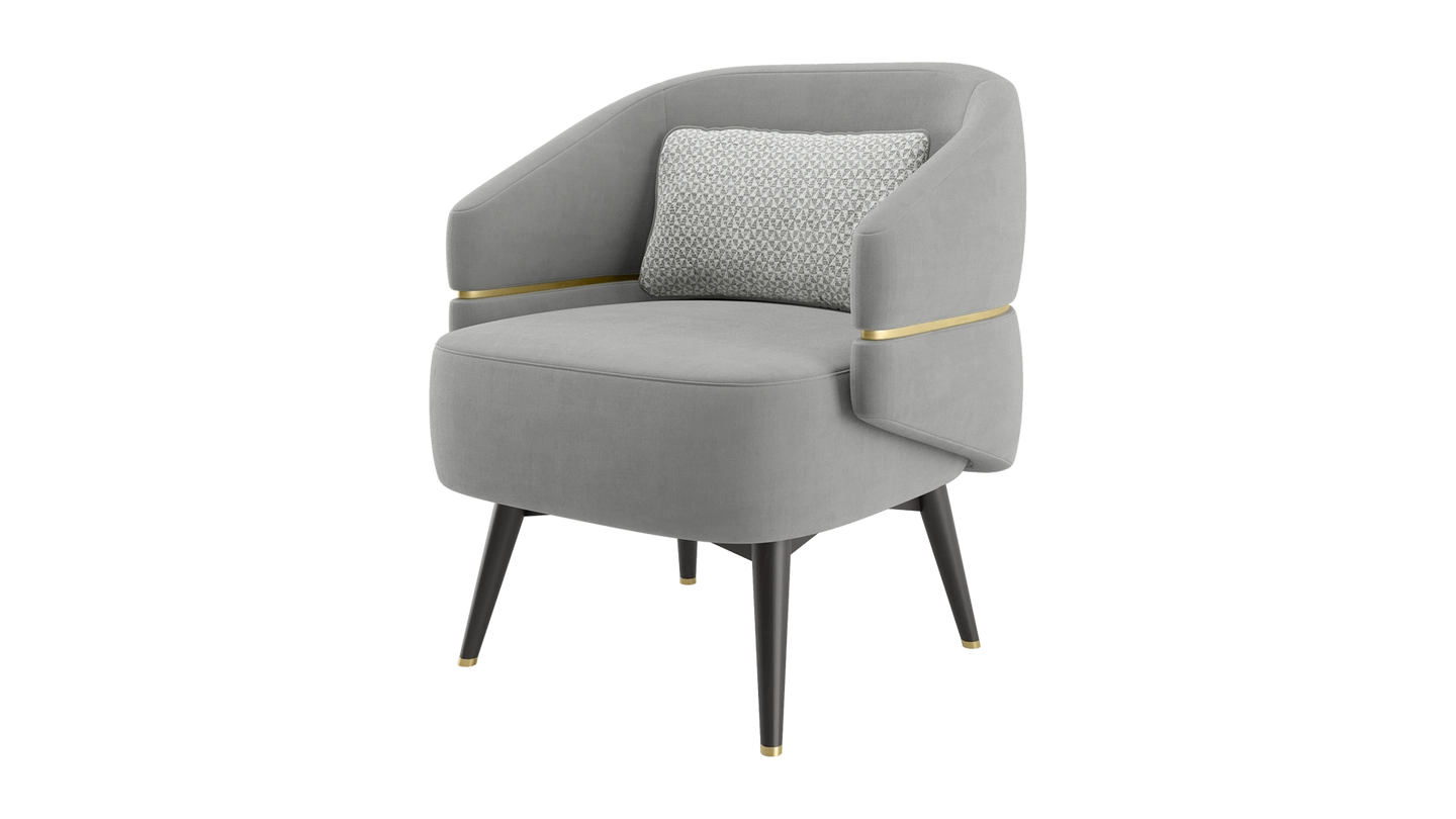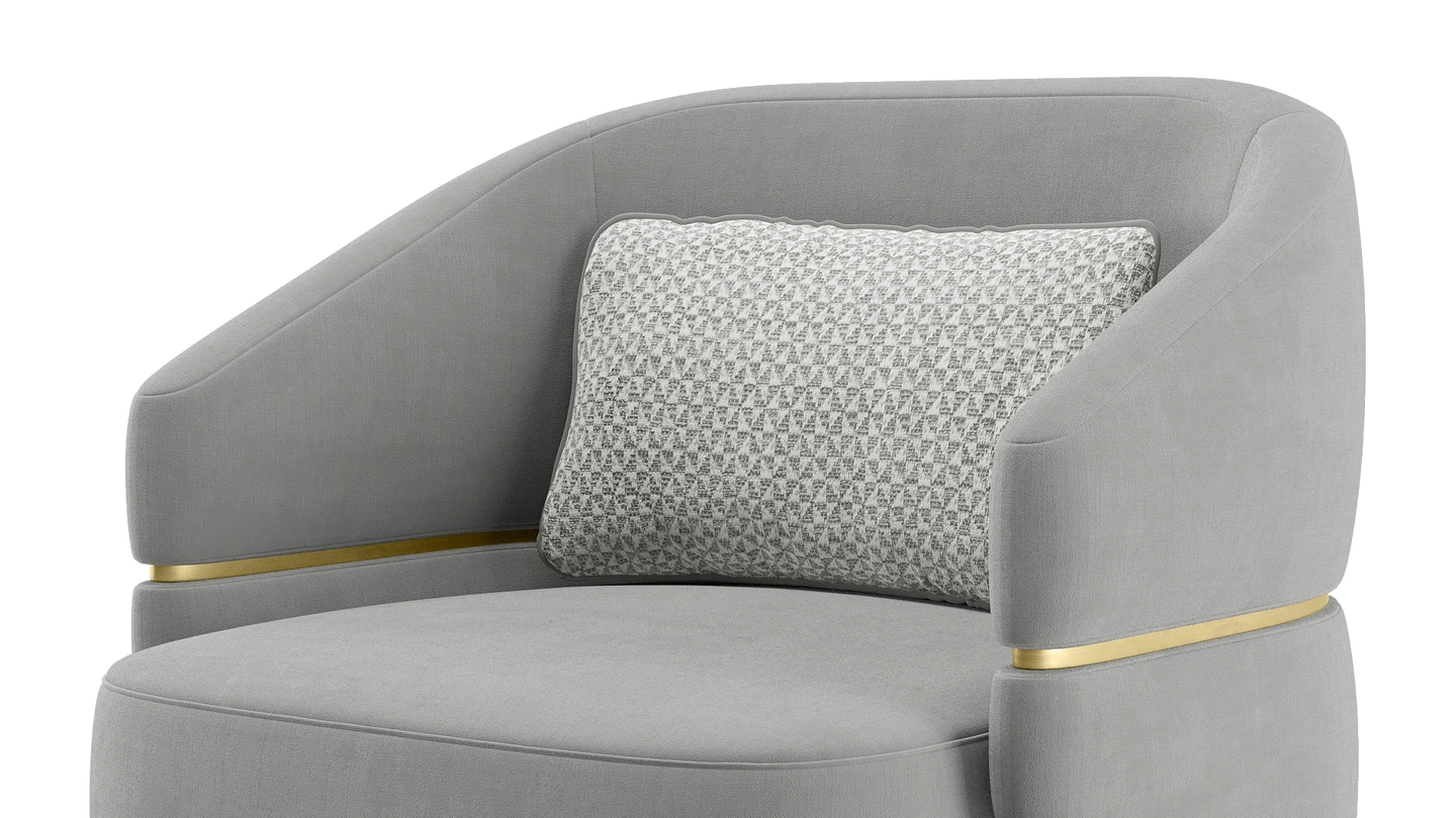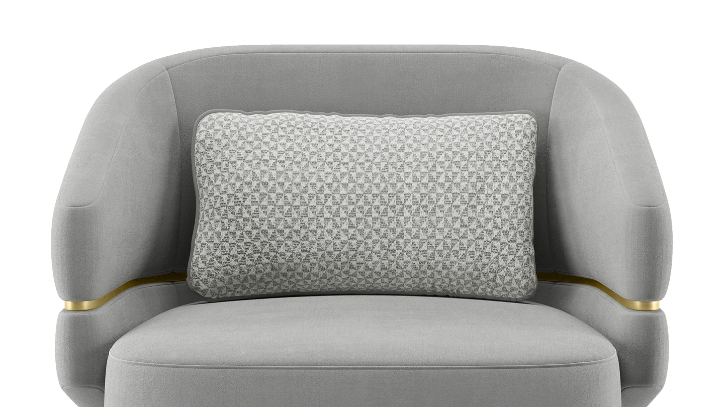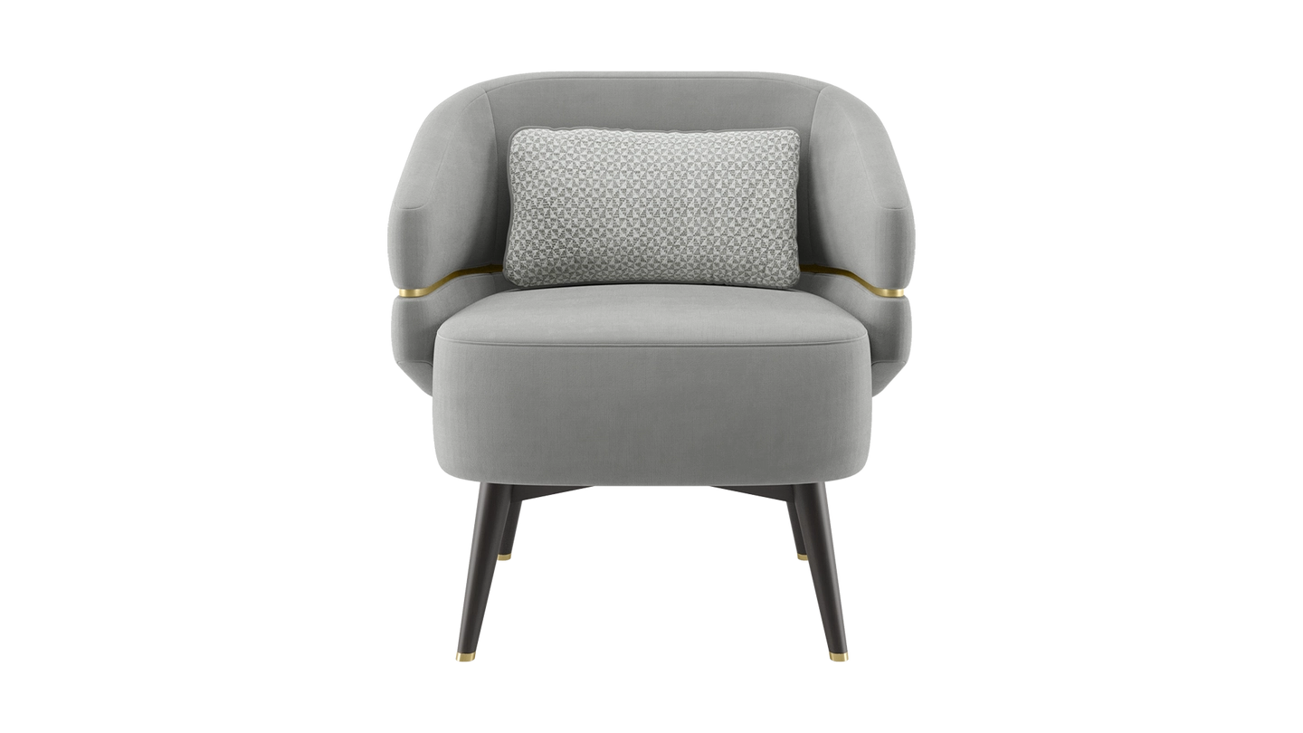 The velvet-upholstered CAIRO Armchair packs a lot of personality into its neat design, which features brushed-brass feet and a striking ‘belt’ that loops around the backrest and arms.