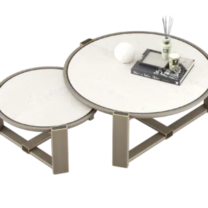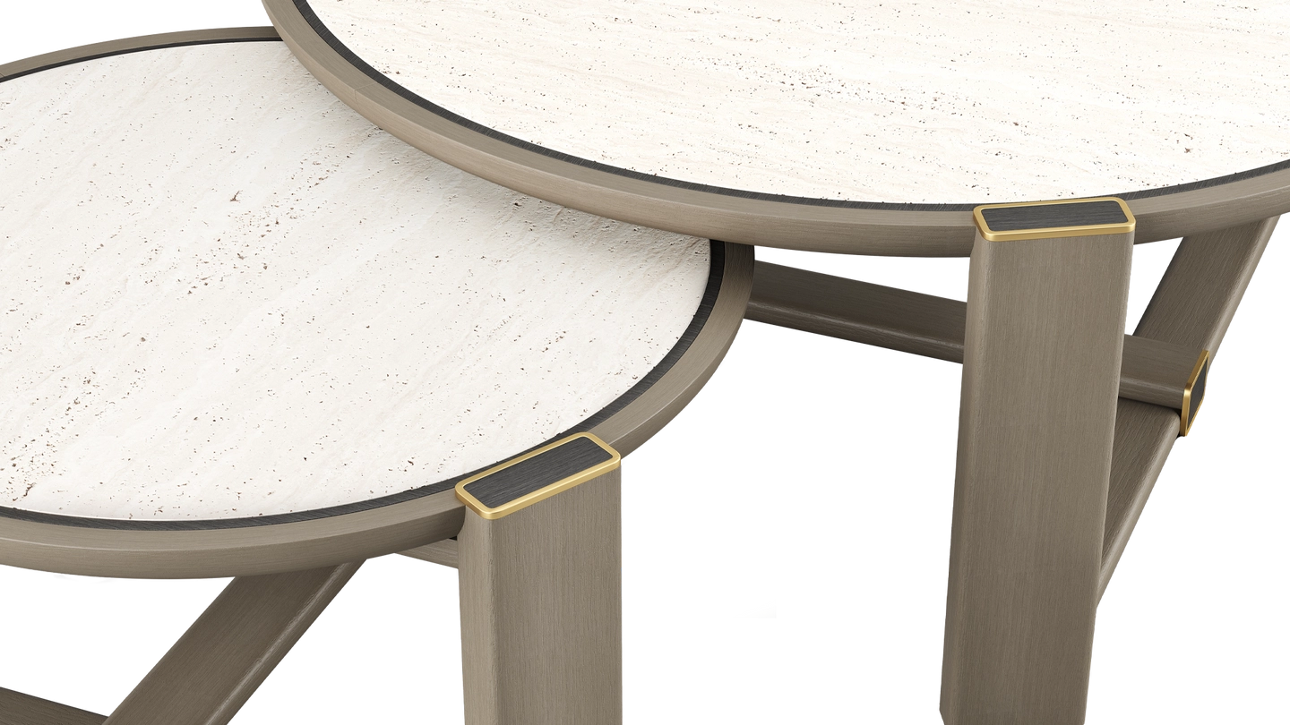The CAMBRIA Coffee Table is an icon in its own right, combining circular and square shapes. The stone top is striking and it perfectly matches the CAMBRIA Side Table.