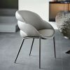 The distinctive Camilla Chair with Wood Legs is characterised by its curvaceous padded seat and backrest. Detailed seams that run horizontally along the back of the backrest create three voluminous sections that disappear fluidly into the sloping armrests.