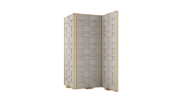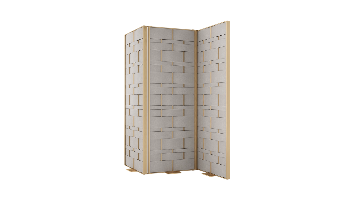 Create zones and privacy within a large or open-plan space with the CAPRICE screen. A versatile piece that can be easily rearranged, it features a frame of brushed brass woven with alternating rows of wide and narrow strips of leather.