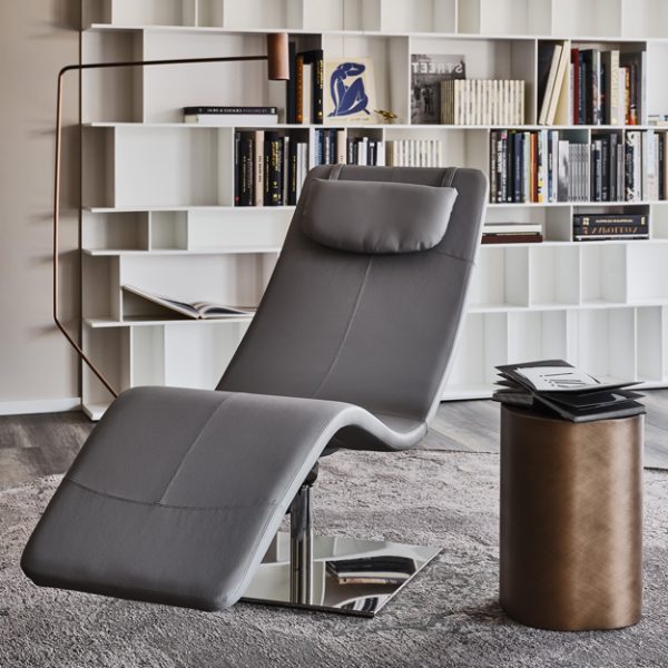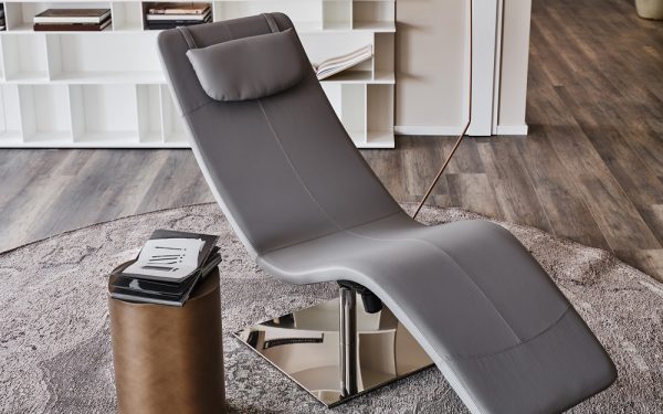 The Casanova Chaise is a sleek, streamlined design featuring a swivelling and adjustable S-shaped seat that is complemented with a black or stainless steel frame. The Casanova can be upholstered in a variety of finishes and colours from the collection.