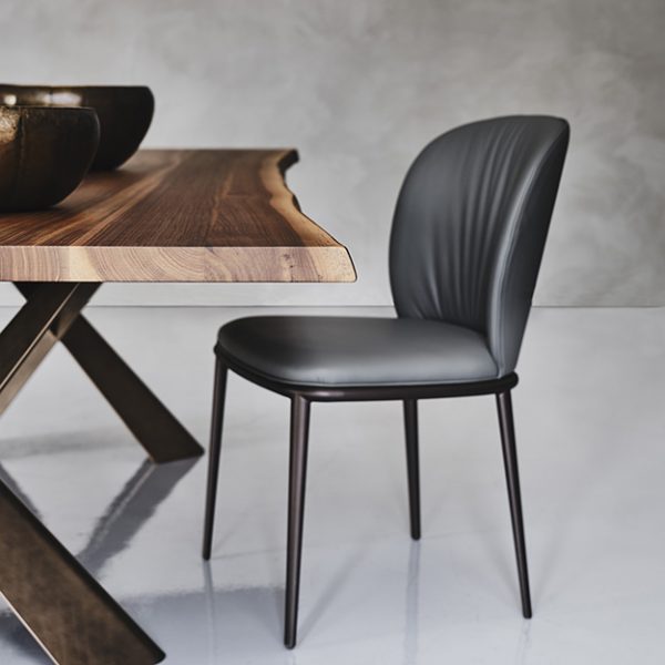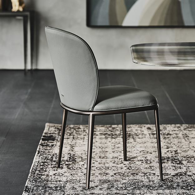 The Chris chair by Cattelan Italia is bold and elegant featuring a curved backrest, padded seat, and a sleek lacquered metal base and legs. The seat and backrest are available in a wide selection of finishes and colours, with a choice of lacquered finish for base and legs.