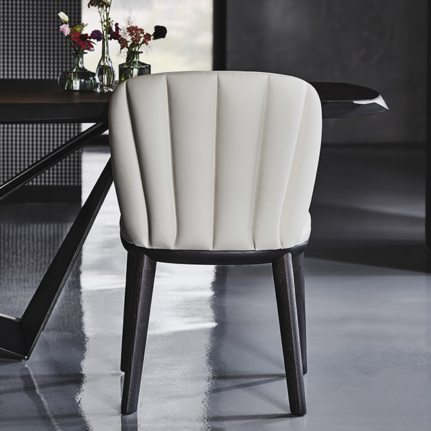 Sleek in its design, the Chrishell Chair Wood Legs features a curved backrest, padded seat, and a smooth edged wood base and legs. The backrest is quilted for a ‘shell-like’ appearance and is available in a wide variety of finishes. The base and legs are available in a selection of solid woods.