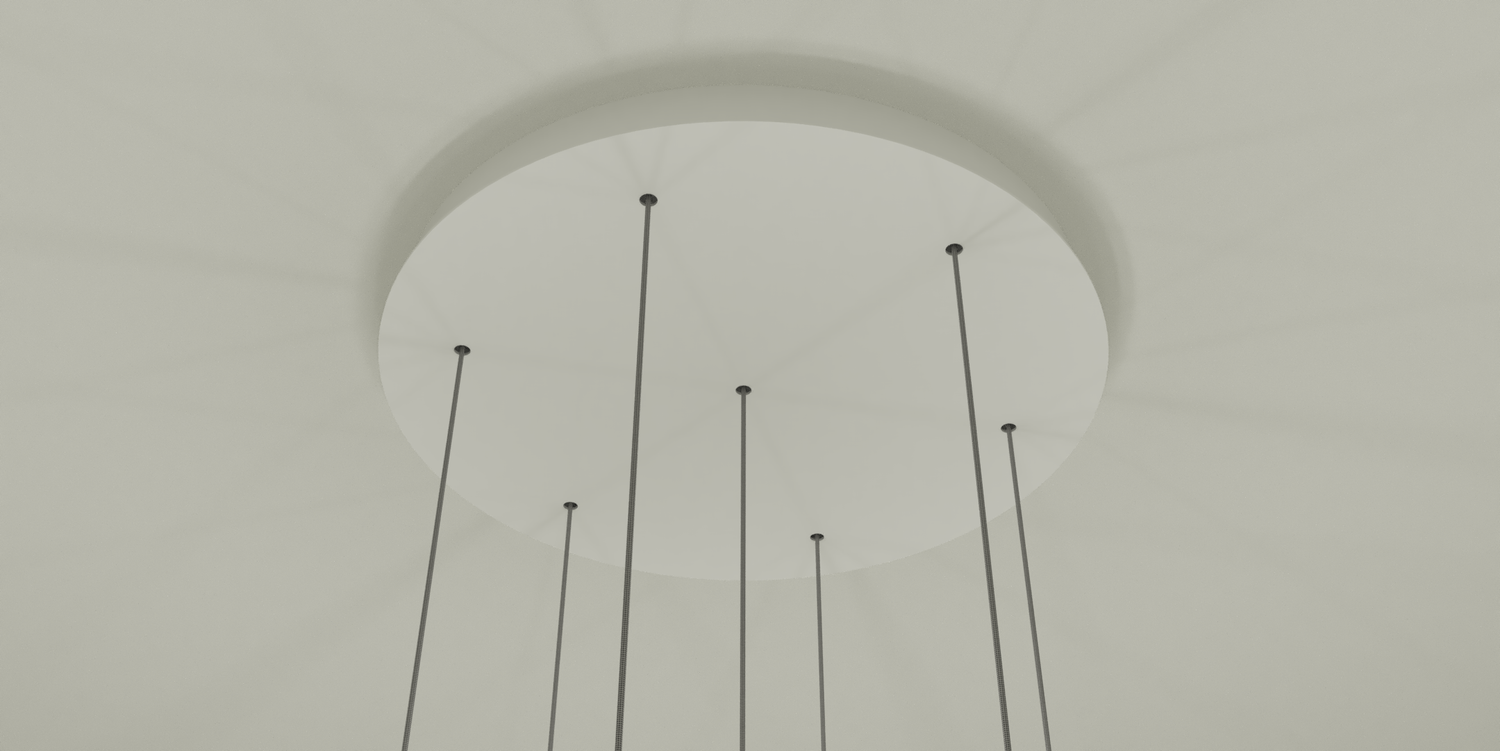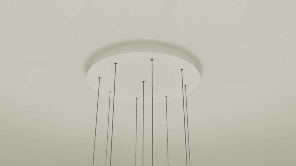A range of circular surface ceiling mounts from 300mm diameter to 700mm to suspend 3 to 14 Pendants. Face plate and body available in a range of painted finishes.