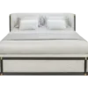 Envelop yourself in luxury with the cocooning COEN bed, which features a tall upholstered headboard and radiates hotel-style comfort.