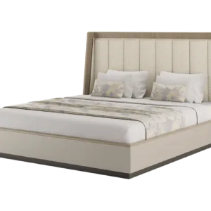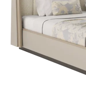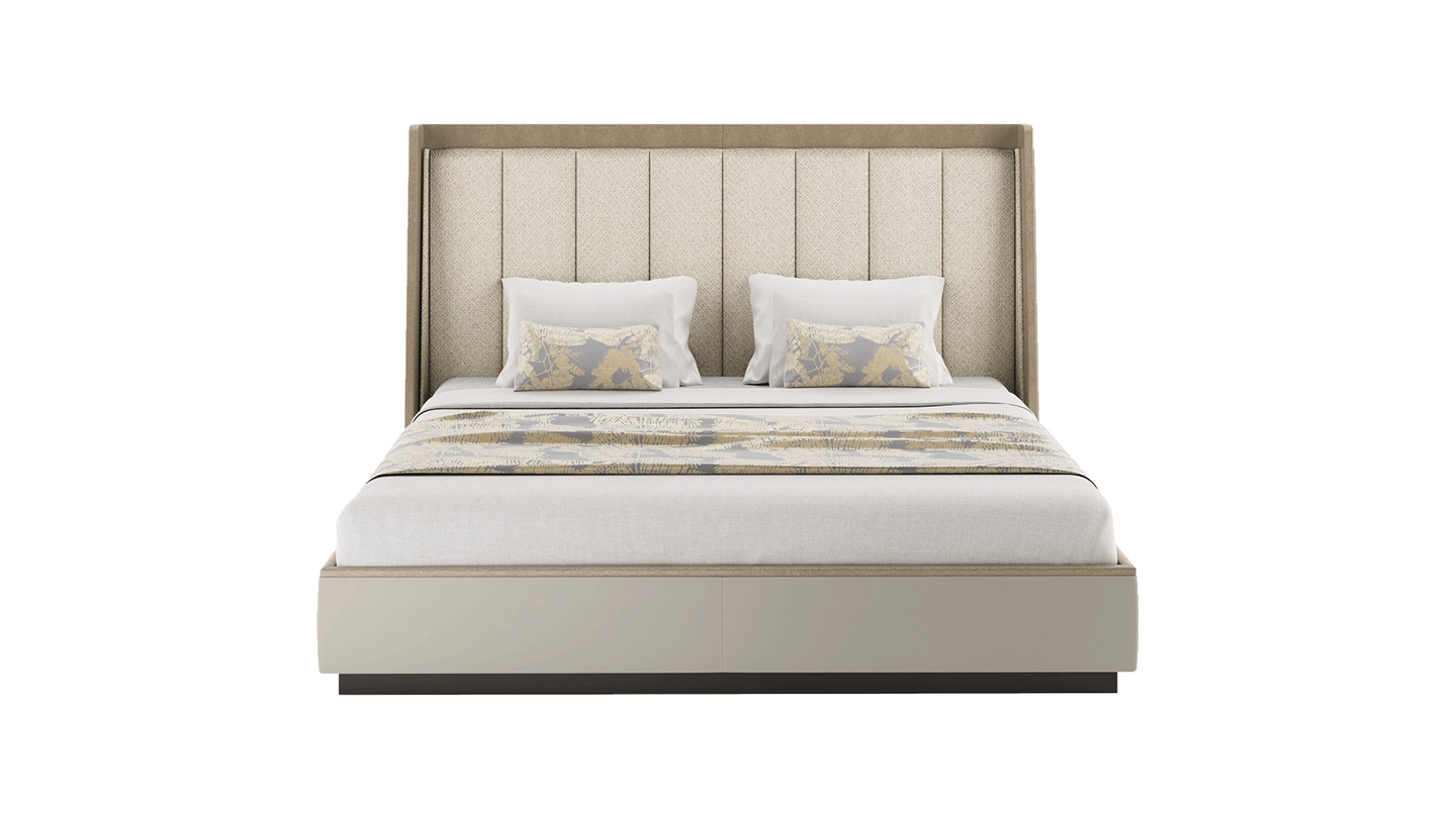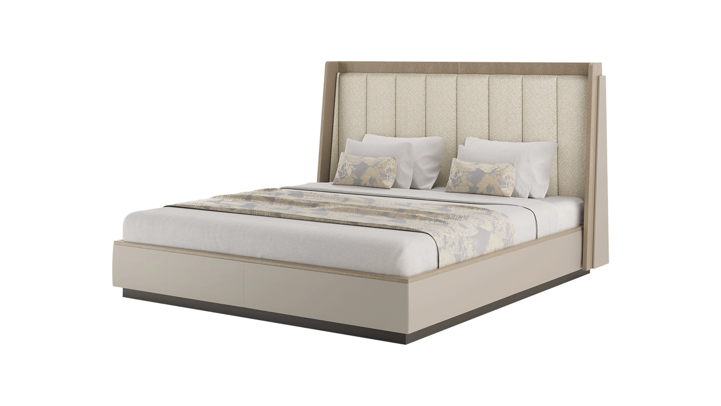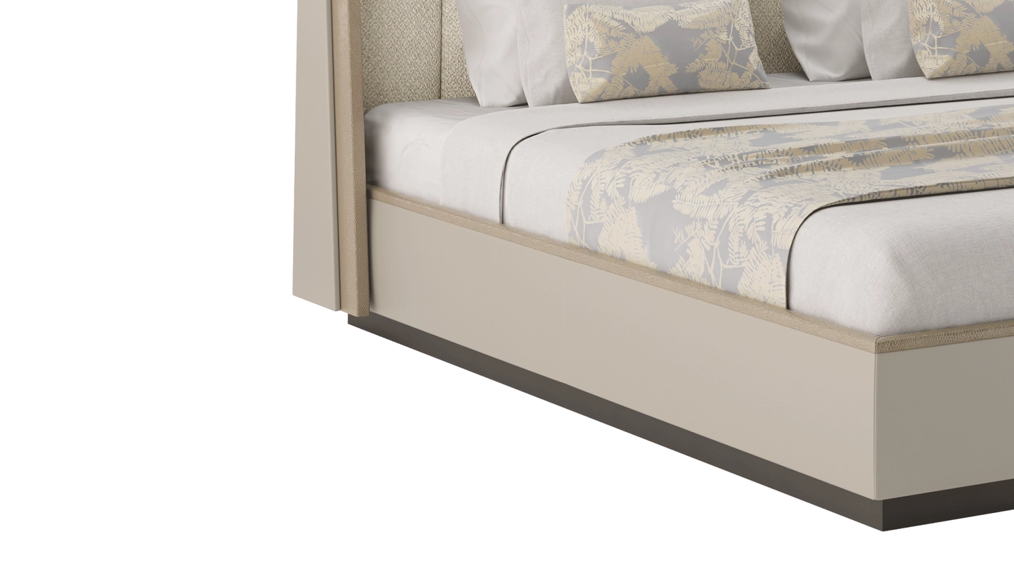 Envelop yourself in luxury with the cocooning COEN bed, which features a tall upholstered headboard and radiates hotel-style comfort.
