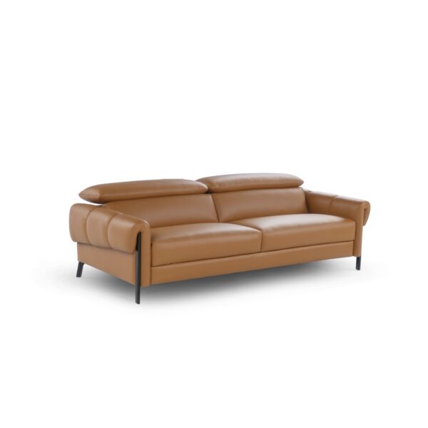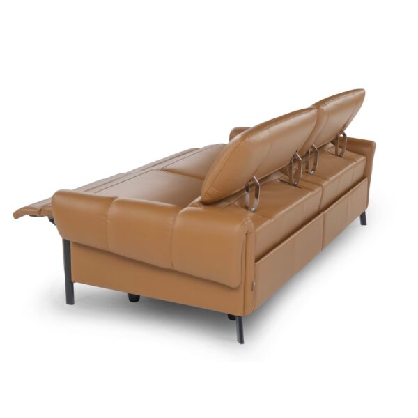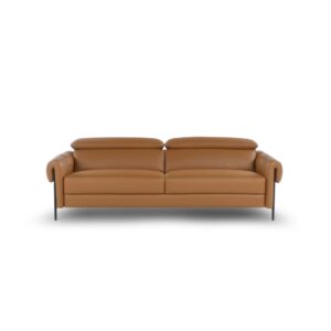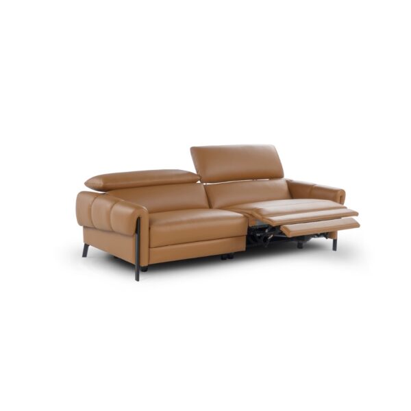 This elegant, contemporary style open-base sofa comes equipped with manually liftable headrests that increase the height of the backrest to transform its elegance into an experience of comfort. The clean and essential design is contrasted by the soft armrest folded outwards. The foot extends upwards and is enveloped by the quilted armrest. The contained mechanism in the recliner versions allows for perfect relaxation and these electrical mechanisms are fully controllable, guaranteeing perfect comfort even when watching TV.