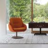 The Copine Bergere Swivel Armchair is an understated contemporary design with a high backrest that slopes smoothly to meet curved armrests and a welcoming rounded seat. This is complemented by a four-spoke metal swivel base with a returning mechanism, in a grey pewter finish.