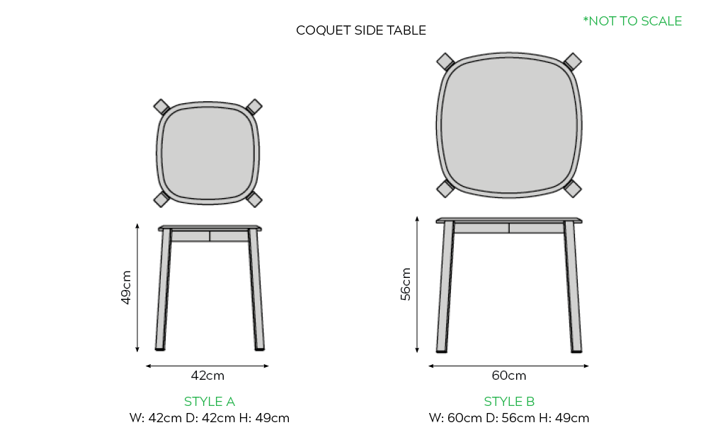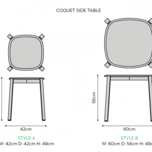 Size | Style A – W: 42cm D: 42cm H: 49cm, Style B – W: 60cm D: 60cm H: 56cm |