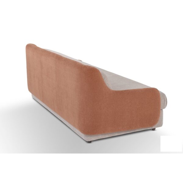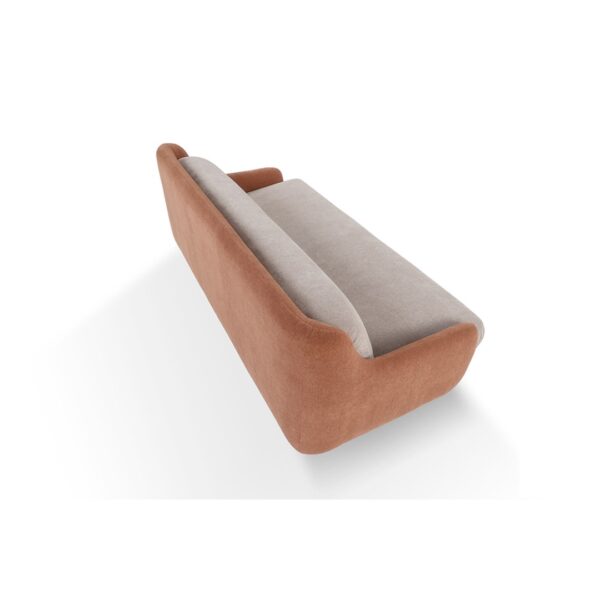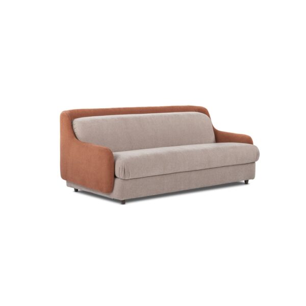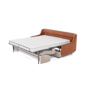 ‘Dafne’, a sofa with a modern design and sinuous, rounded lines capable of changing appearance without giving in to compromise. Its name matches that of the nymph who preferred to turn herself into a laurel plant rather than give in to unwanted love. Designed for living spaces, it can be paired with the ‘Milla’ to offer a very comfortable welcome. During the day ‘Dafne’ is a comfortable place to spend hours in perfect relaxation, while at night, with a few simple movements, the ‘Dafne’ sofa transforms into a cosy bed with a comfortable 13 cm high mattress. The ecological polyurethane foam mattress is ideal for relaxing and facing the next day. It is unobtrusive in the larger bed version (with a 160 cm mattress it can reach a length of 208 cm) and is accommodating in the relaxation version.