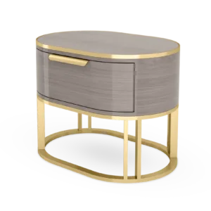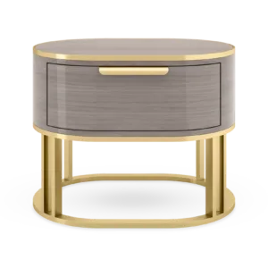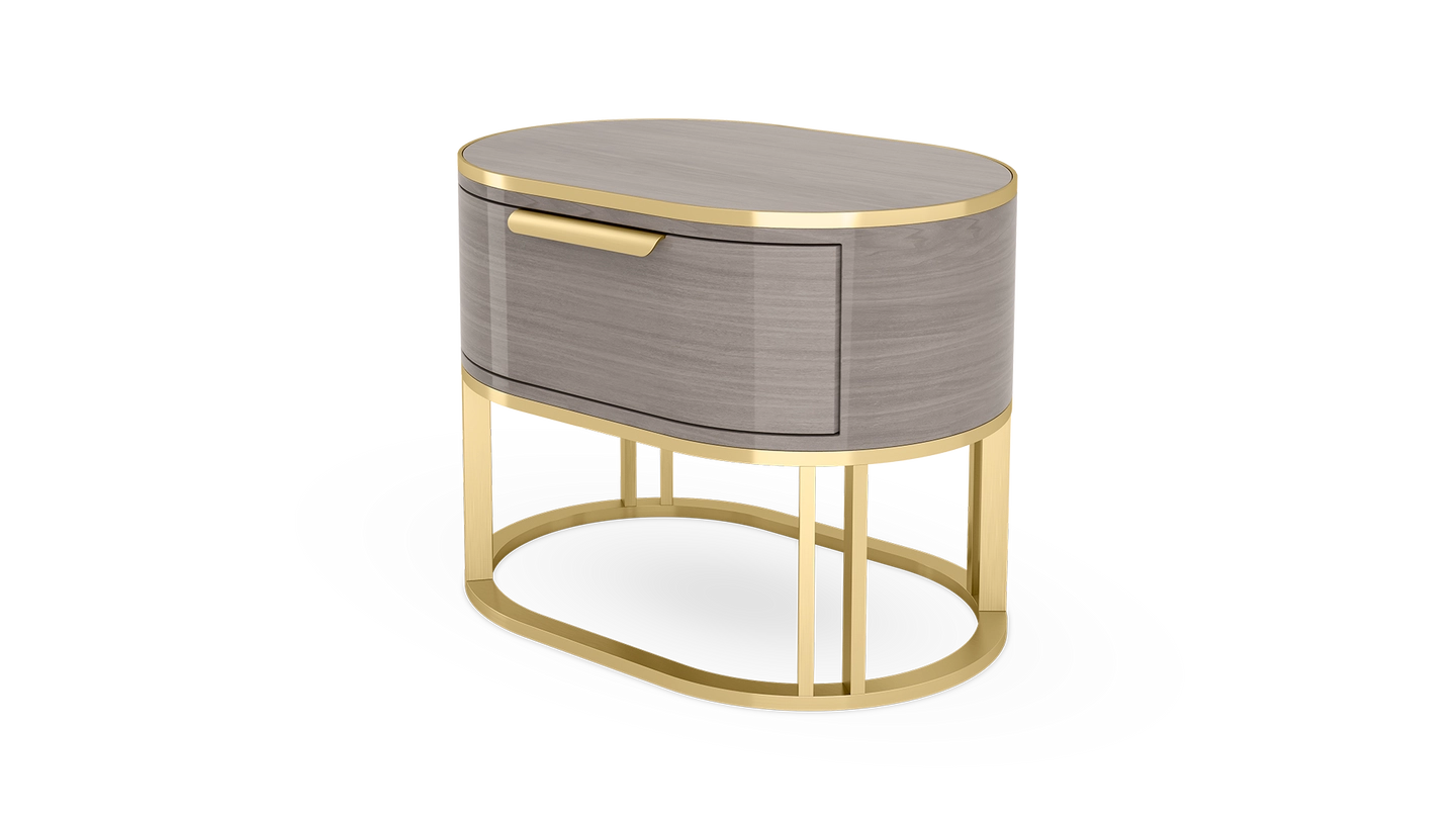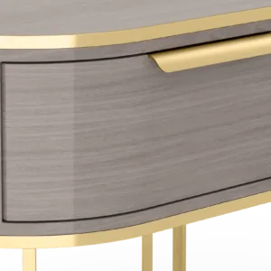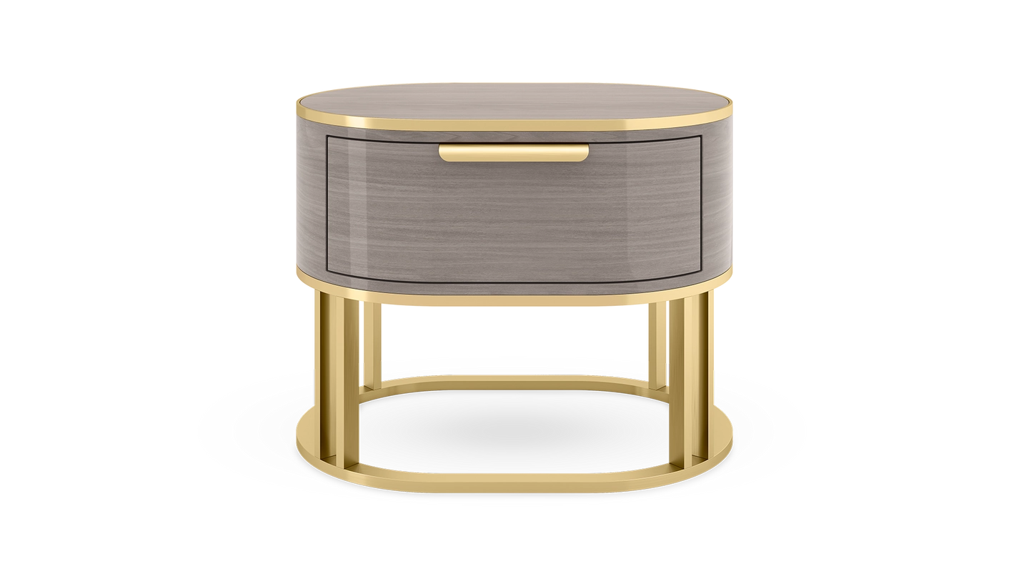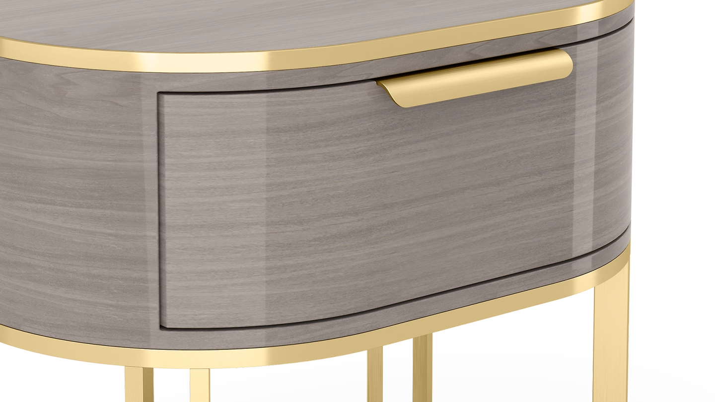 The dashing DALLAS Bedside Table, crafted from glossy wood veneer and brushed brass, features a single, deep drawer for all your night-time essentials.