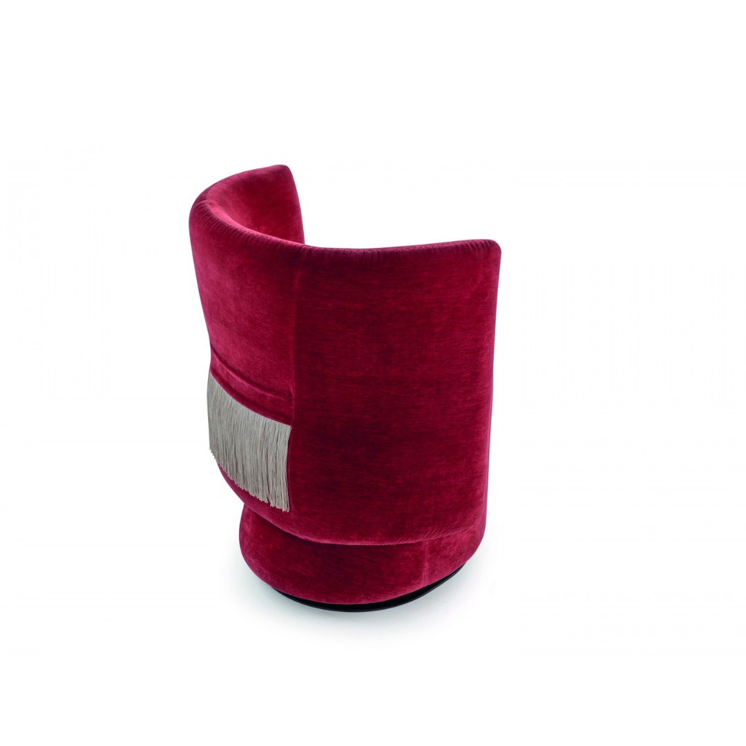 Doña G’ is the fourth European version of the ‘Italian Lady’, which comes dressed in a new outfit and is even more international. This new Spanish version, also available in swivel and container versions, is an expression of “Made in Italy” in the world and marks the continuation of a collection that gives life to a ‘Giuggiola’ for each country. The seat remains unchanged with its characteristic tail base reminiscent of the train of an evening dress while the back of the ‘Doña G’, which in the Giuggiola is woven and inspired by the particular hairstyle typical of the women of our region, is transformed into a rigorous dress with martingale decorated with fringes. It comes in leather or fabric.