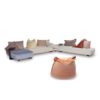 Dragées (from the French ‘confetti’) is the more structured variant of the ‘Gianduiotto’. Although inspired by the Gianduiotto’s backrests and armrests, the Dragées customises them by increasing their height to provide a more composed and supported comfort. It is a model of extreme elegance, raised from the ground and featuring a very thin base on which the backrests and armrests rest directly and are enriched by a decorative stitching.