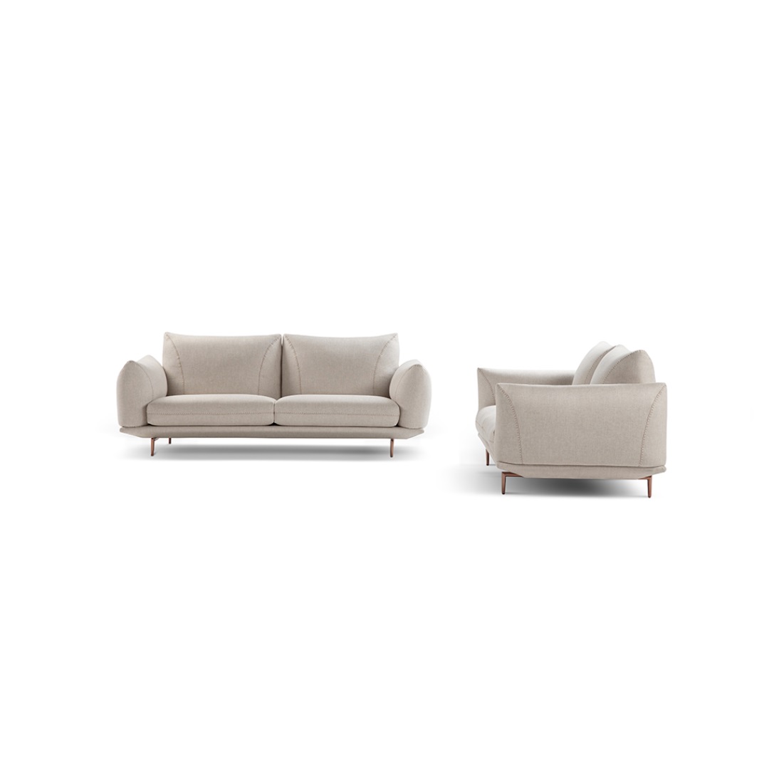 Dragées (from the French ‘confetti’) is the more structured variant of the ‘Gianduiotto’. Although inspired by the Gianduiotto’s backrests and armrests, the Dragées customises them by increasing their height to provide a more composed and supported comfort. It is a model of extreme elegance, raised from the ground and featuring a very thin base on which the backrests and armrests rest directly and are enriched by a decorative stitching.