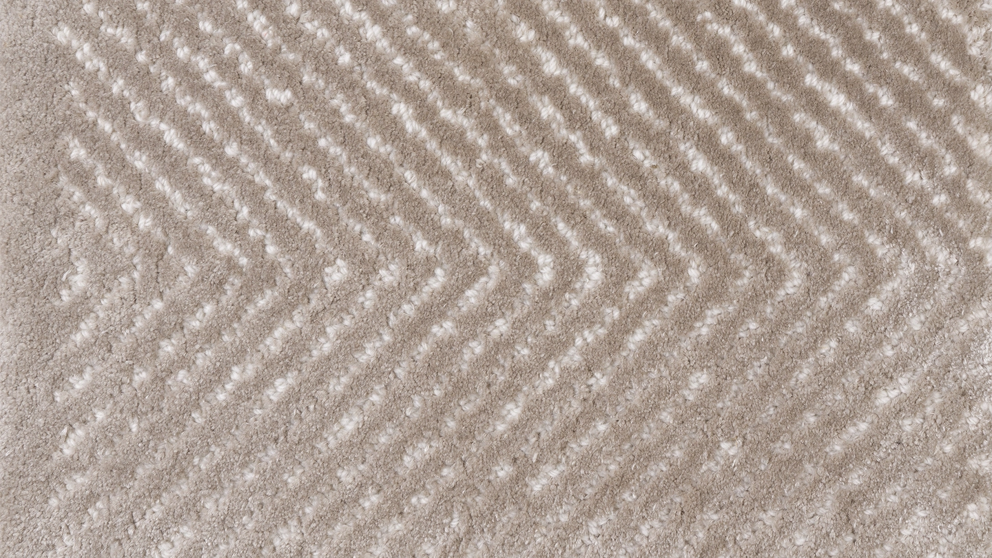 Add a graphic note to floors with the botanical silk and wool DUNEDIN rug, which creates a chevron pattern with alternating rows of beige and white fibres.