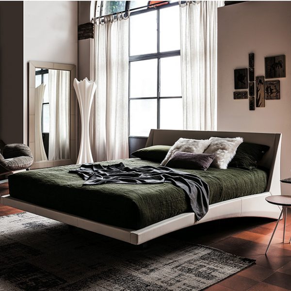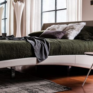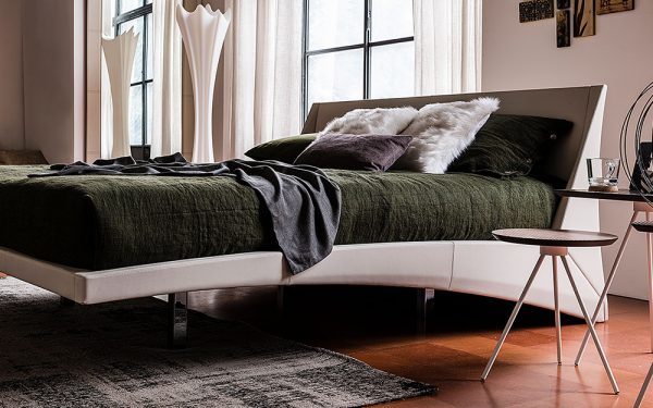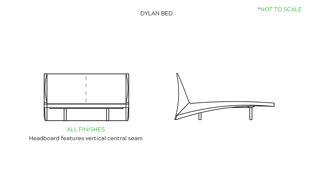The Dylan is a striking angular upholstered bed with statement curves and discreetly positioned chromed steel feet, available in a host of finishes and colours from the collection. Available in a choice of three sizes.