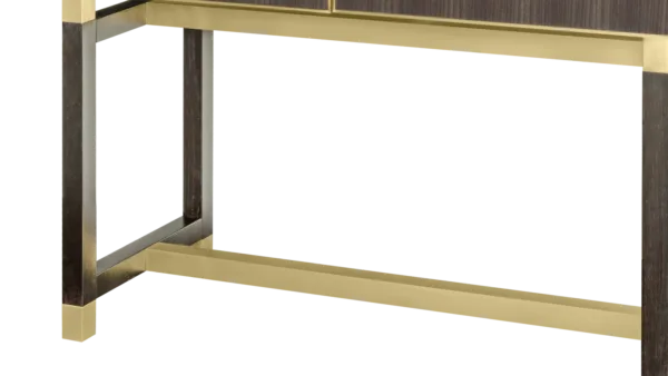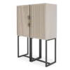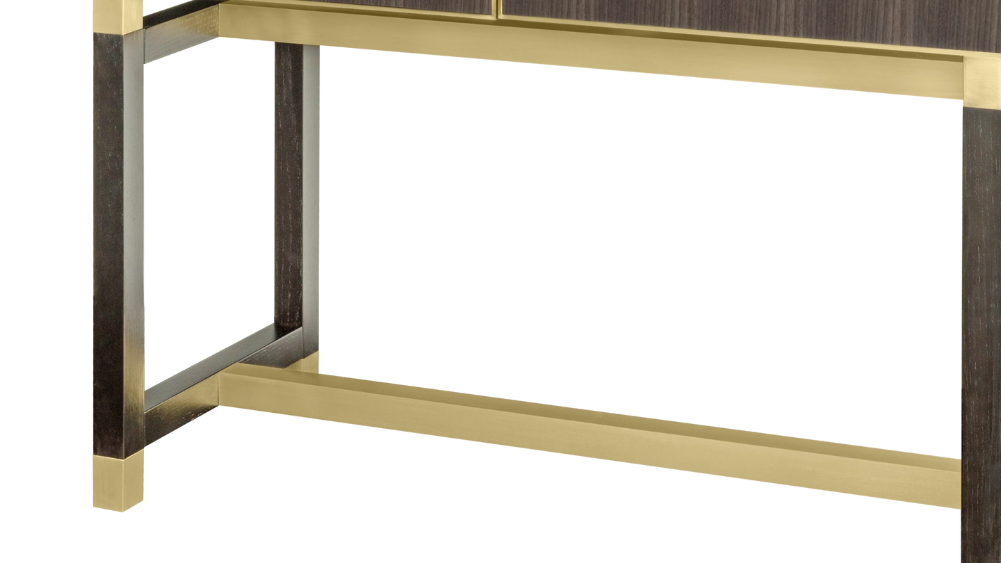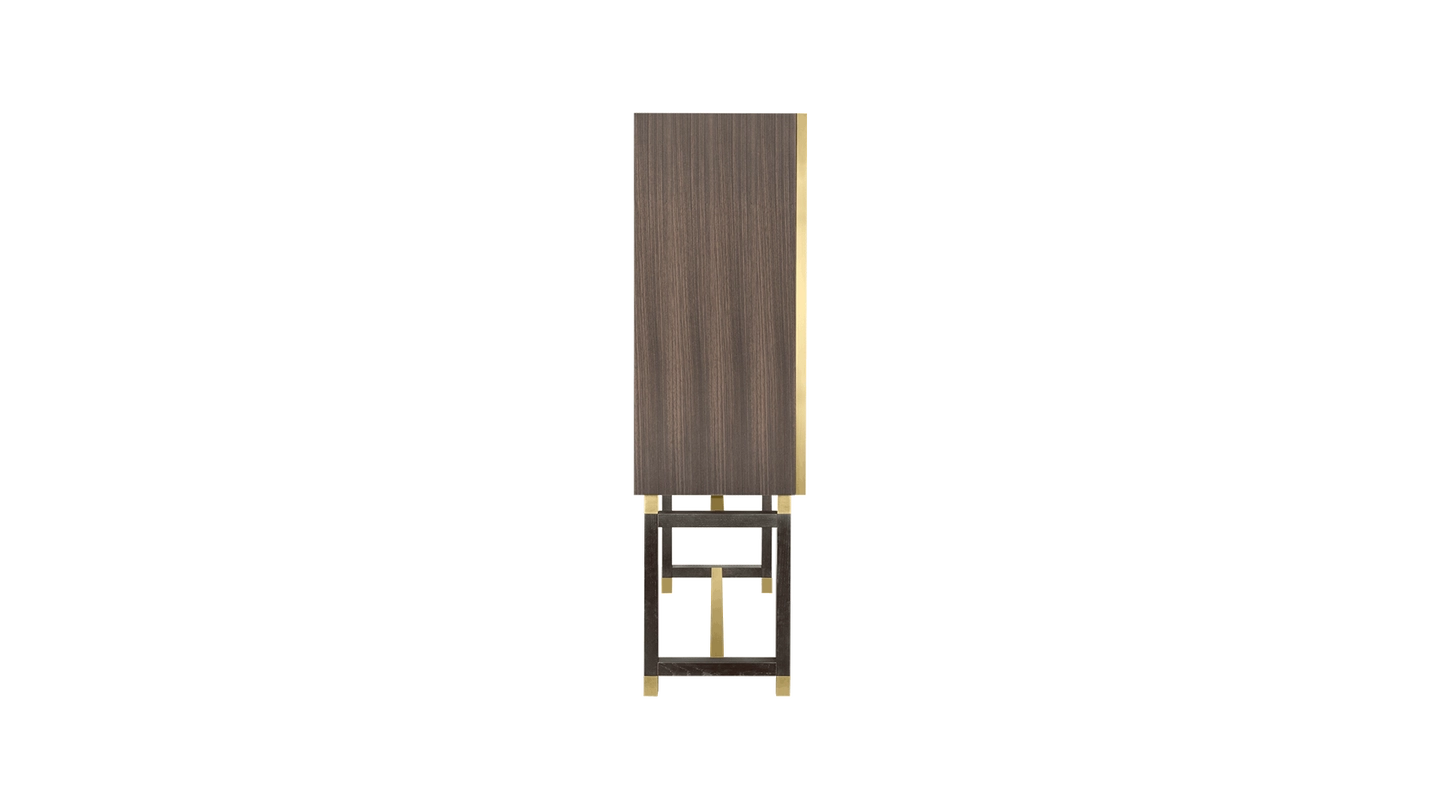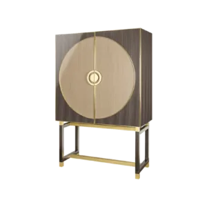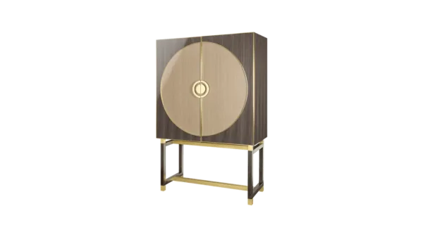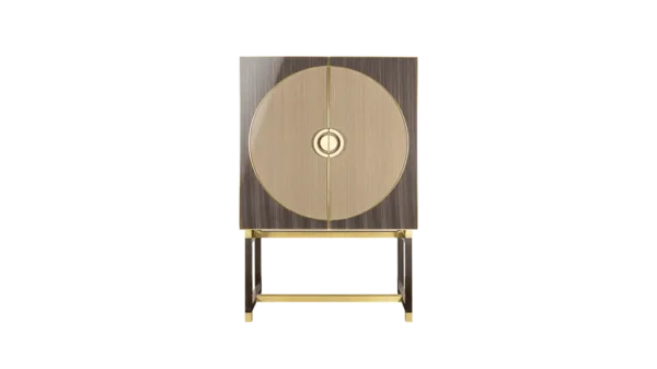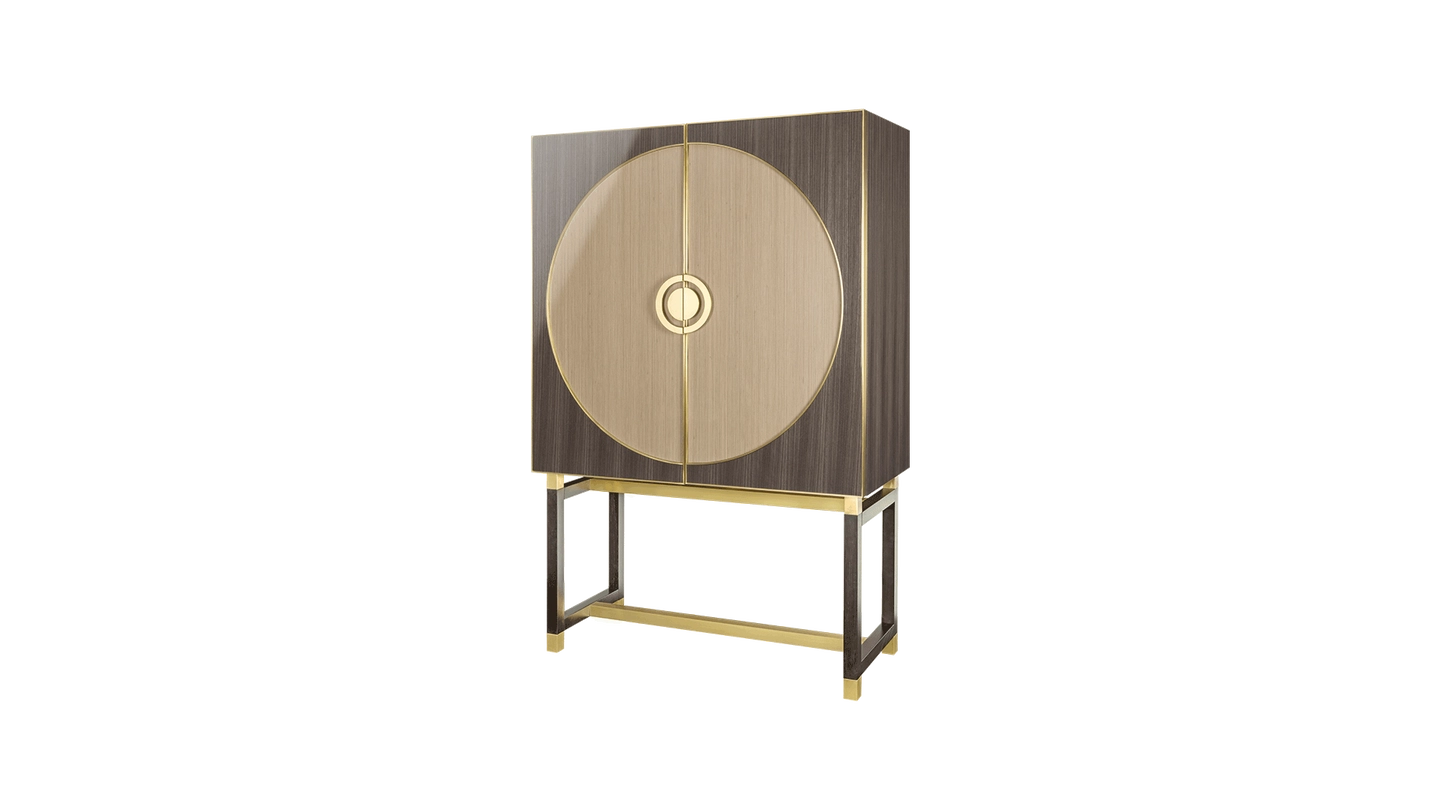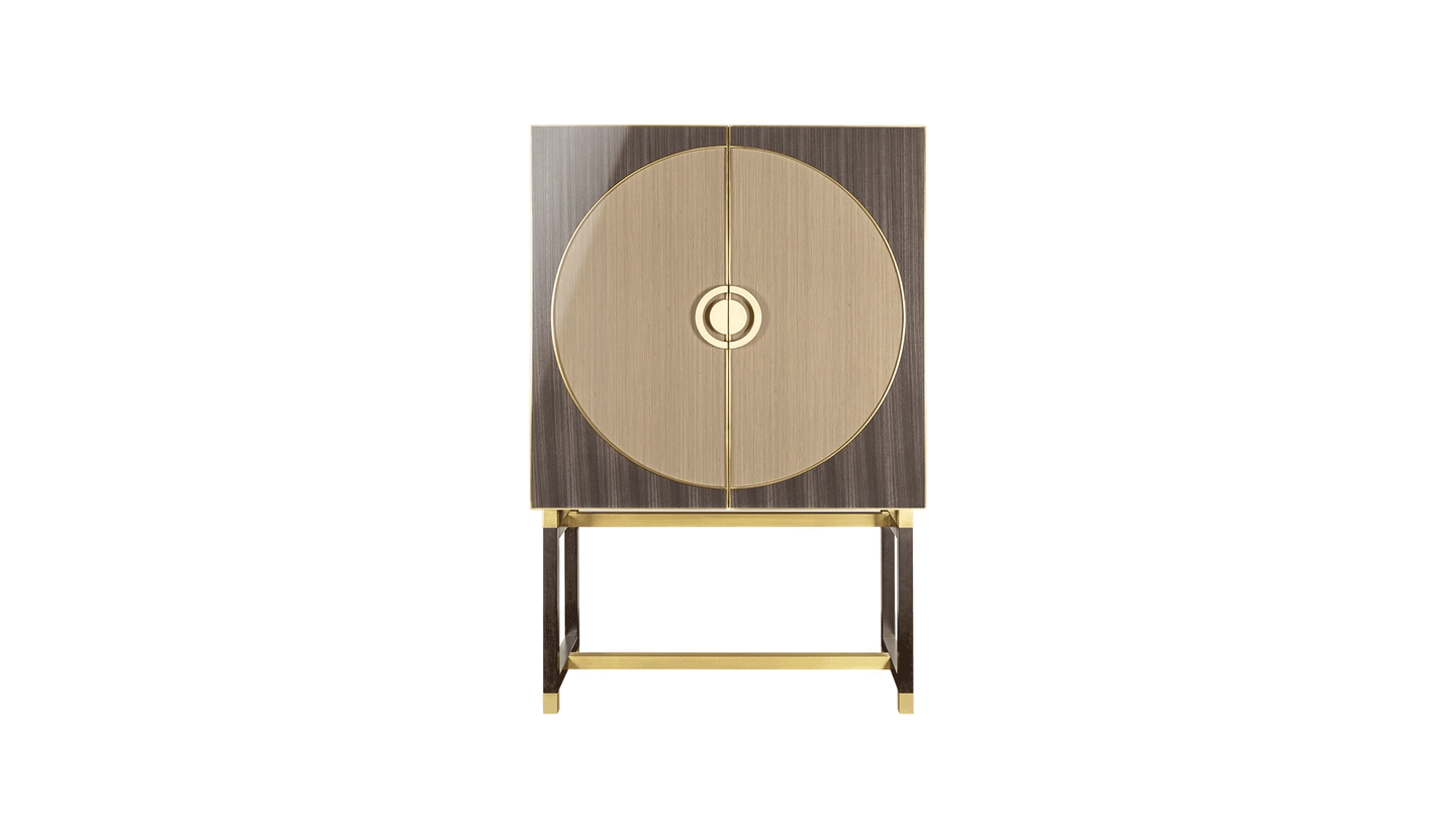 The elegant EDINBURGH tall cabinet explores the subtle art of contrast by embellishing a clean-cut silhouette with circular motifs, juxtaposing light and dark tones of wood veneer to captivating effect. Inside, a suede-lined drawer provides compartmental storage while a bronze mirror back adds glamour.