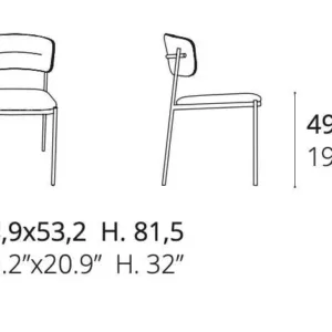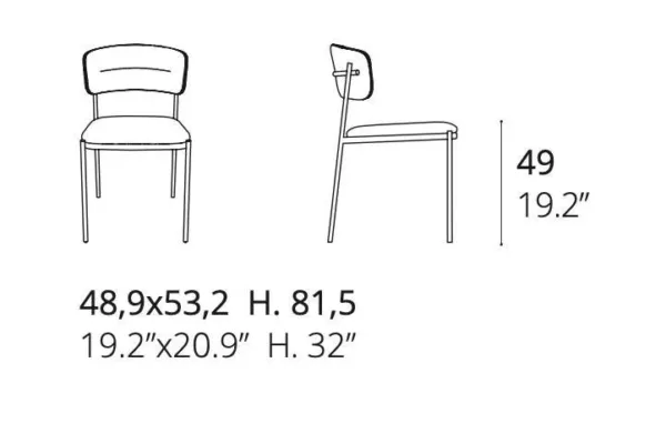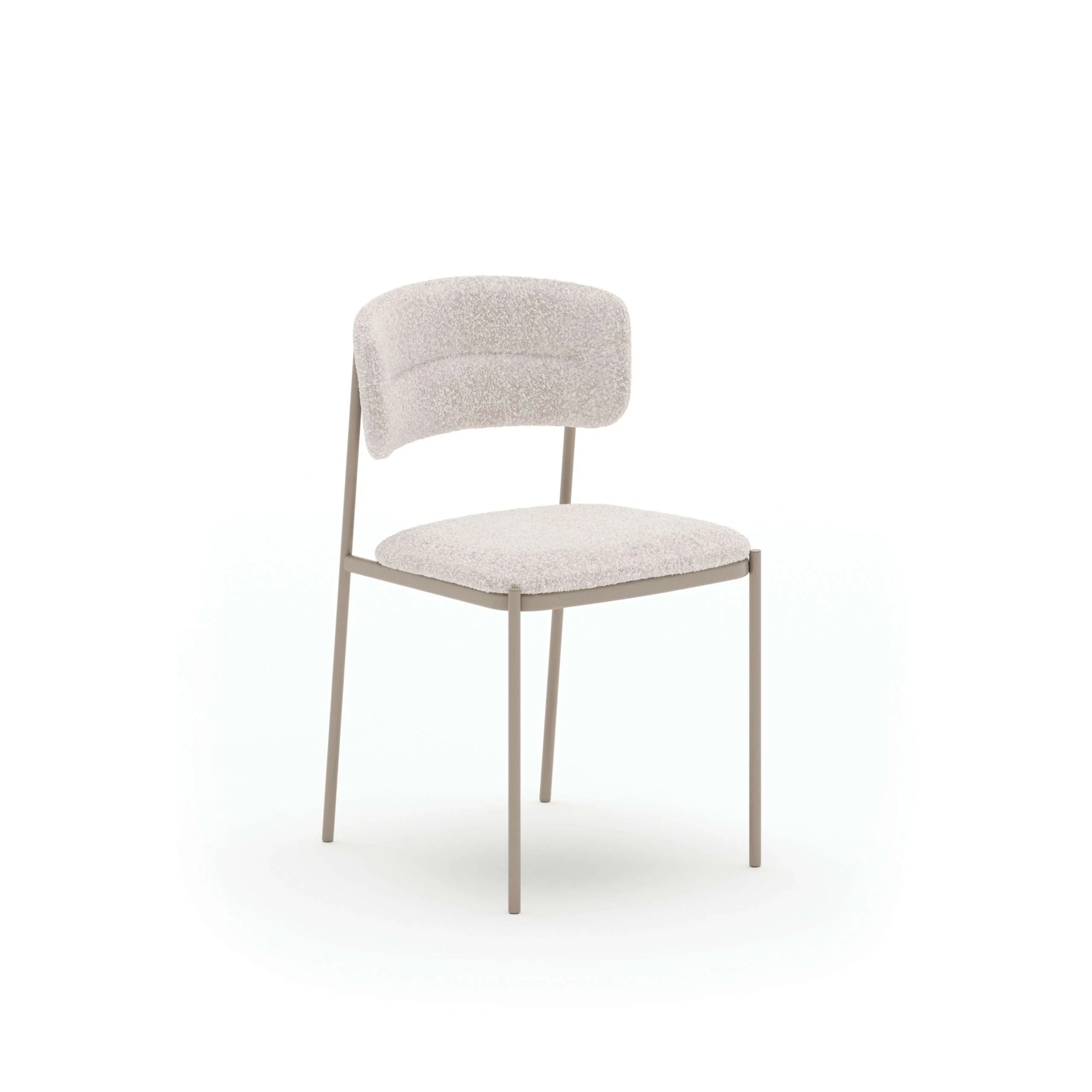 Chair with backrest and seat upholstered in various finishes. Painted metal structure.