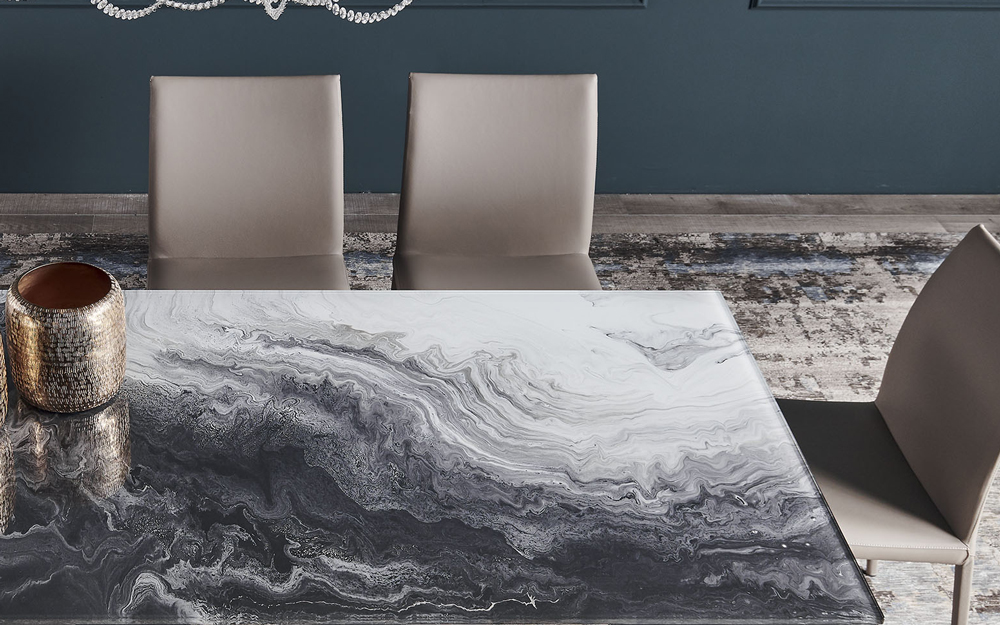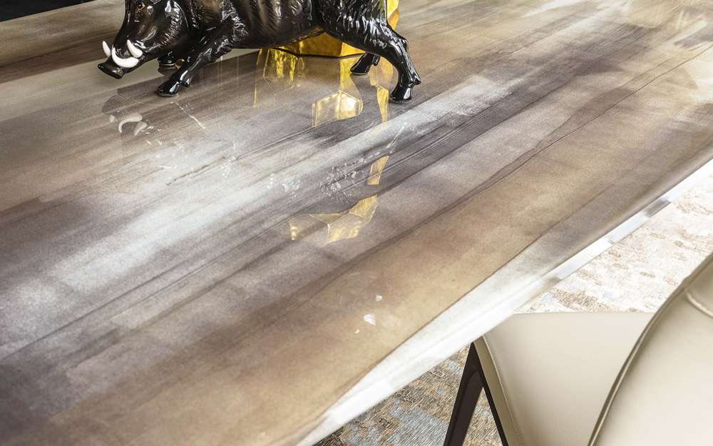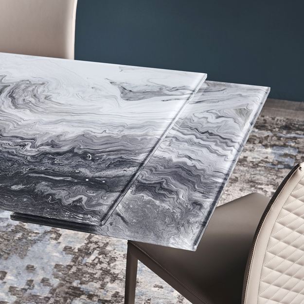 The Cattelan Italia Eliot CrystalArt Drive features an extending CrystalArt print glass top on a striking angular base in a selection of lacquered steel finishes. Top and extensions are available in 12mm glass in a choice of CrystalArt design. Available in three extending sizes.