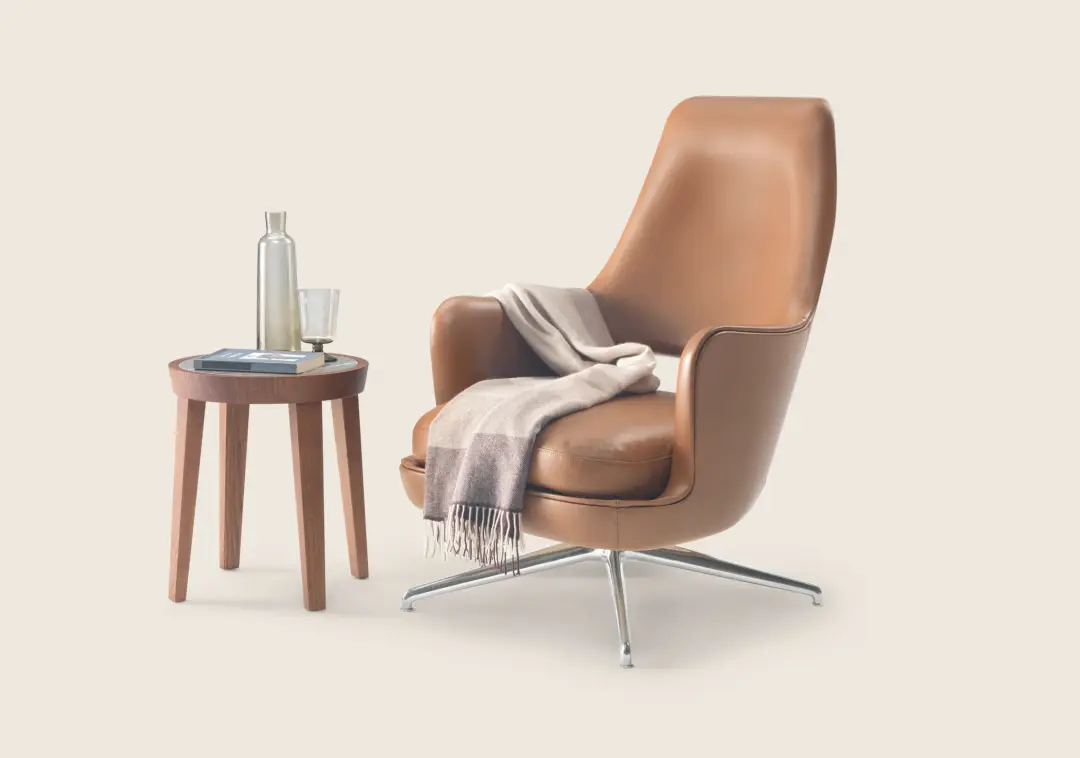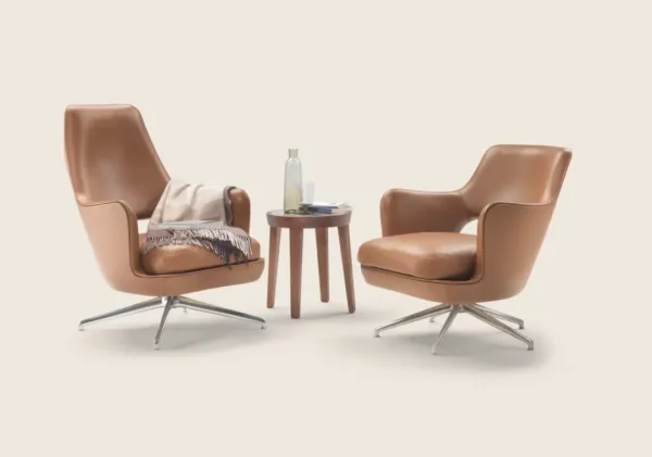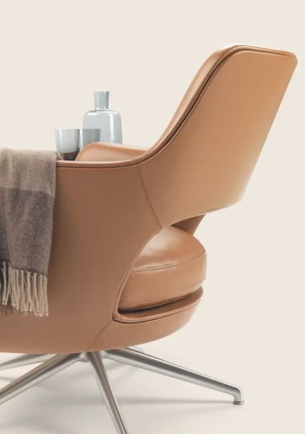 Eliseo armchair is underscored by the option of having a wood base in a number of finishes, or a cast aluminum base, equipped with 360-degree swivel, that lends the armchair a dynamic air and facilitates interaction with the surrounding space. All these Designs are Fully Bespoke . Our Expert Team can create any Design as per your specifications and requirements. For More information please contact our expert.