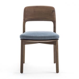 The Emma dining chair is a classic design with a statement Canaletto walnut seat and backrest with a padded seat available in a selection of fabric or leather finishes.
