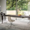 The base stands tall and strong, both in design and function whilst the top is enriched by a play of metal and wood, carving and cutting through the surface following the base setup. The materials equally showcase what is achievable with moka oak or sucupira contrasting with micaceous brown, oxy grey, brass or titanium in metal design.