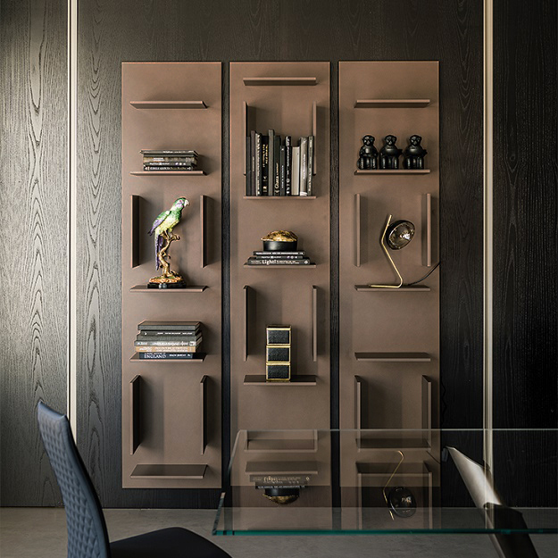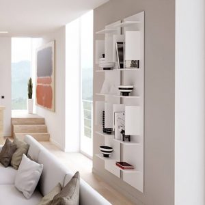 The Fifty is a modular wall bookcase featuring vertical and horizontal supports in an open arrangement for a light and contemporary look. Perfect as a single unit or combined, creating a bold shelving arrangement as desired.